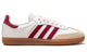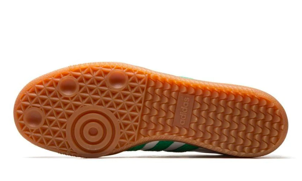 The adidas x Sporty & Rich Samba sneakers feature a green tone on the usual 3-Stripes on the sides and heel tab. This model has a low-top silhouette, crafted from calf leather, and sits atop a classic gum sole for a vintage look.