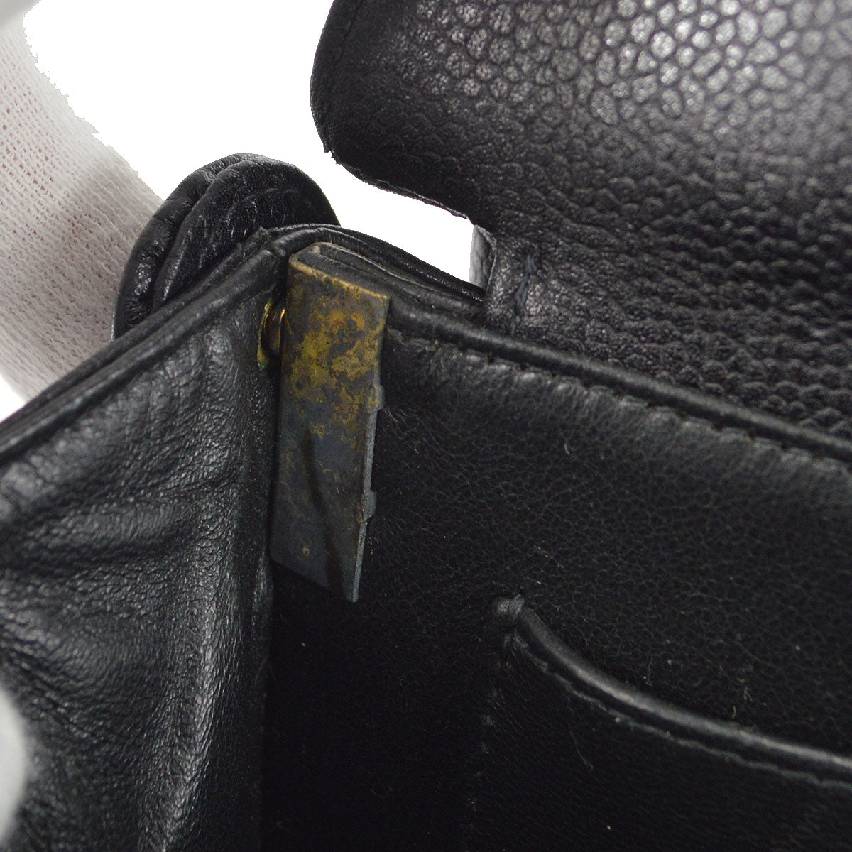 CHANEL 1996-1997 Double Side Classic Flap Shoulder Bag Medium Black Caviar