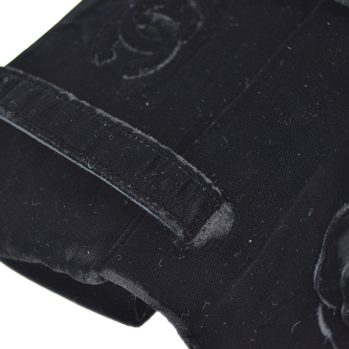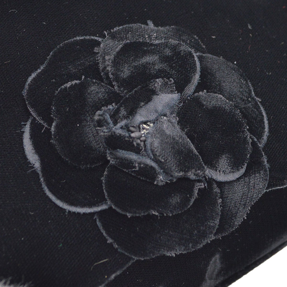 CHANEL Camellia Shoulder Bag Fringe Black Velvet