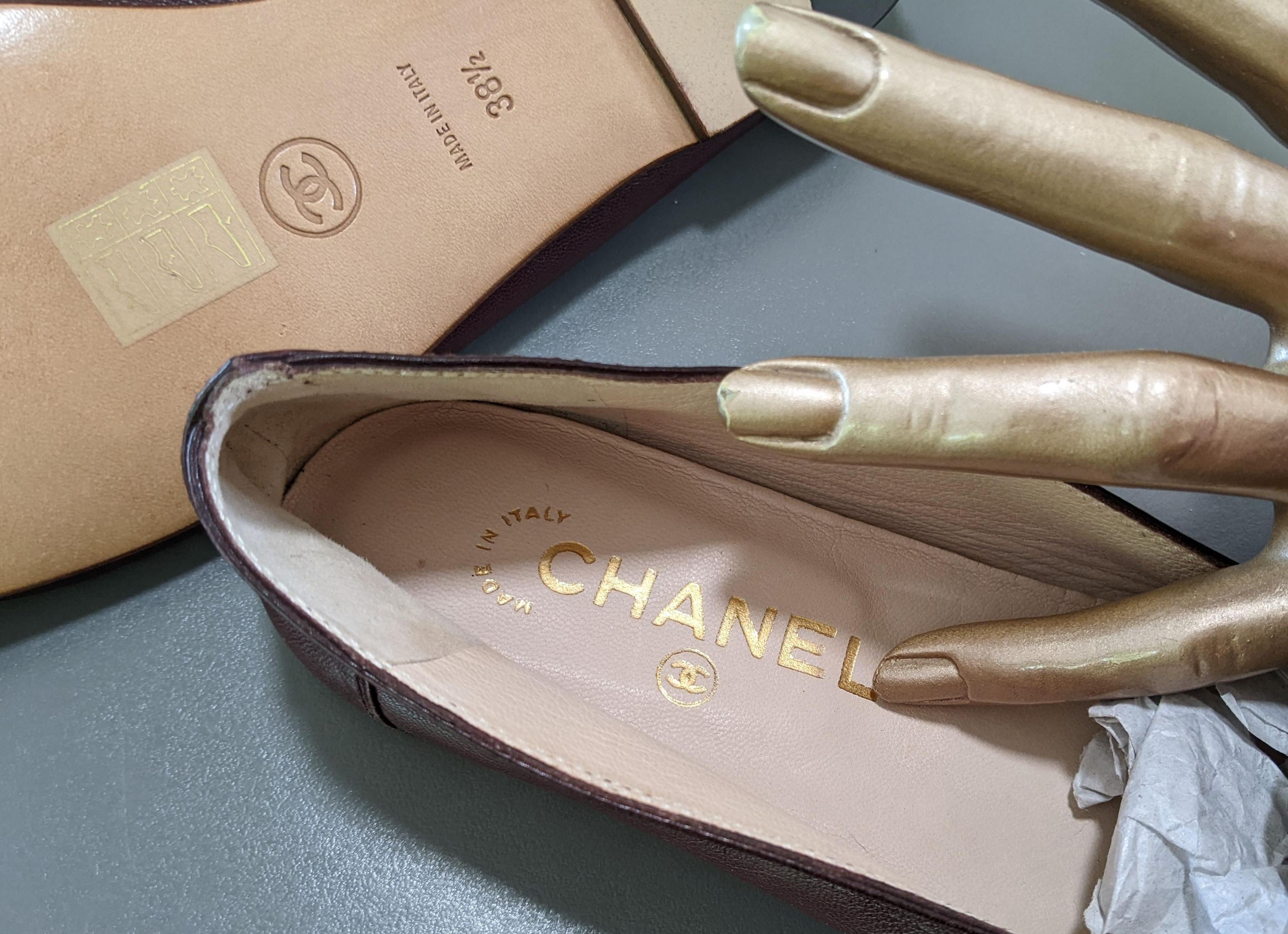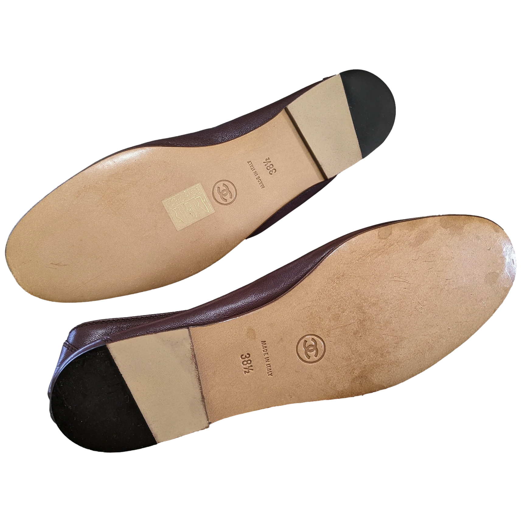 Chanel 1990s Chocolat Kid Ballet Flat Pumps Ballerines en Chevreaux Xtra Soft Sz 38.5, New!