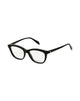 logo, shaded lenses, plastic frame, cat eye style