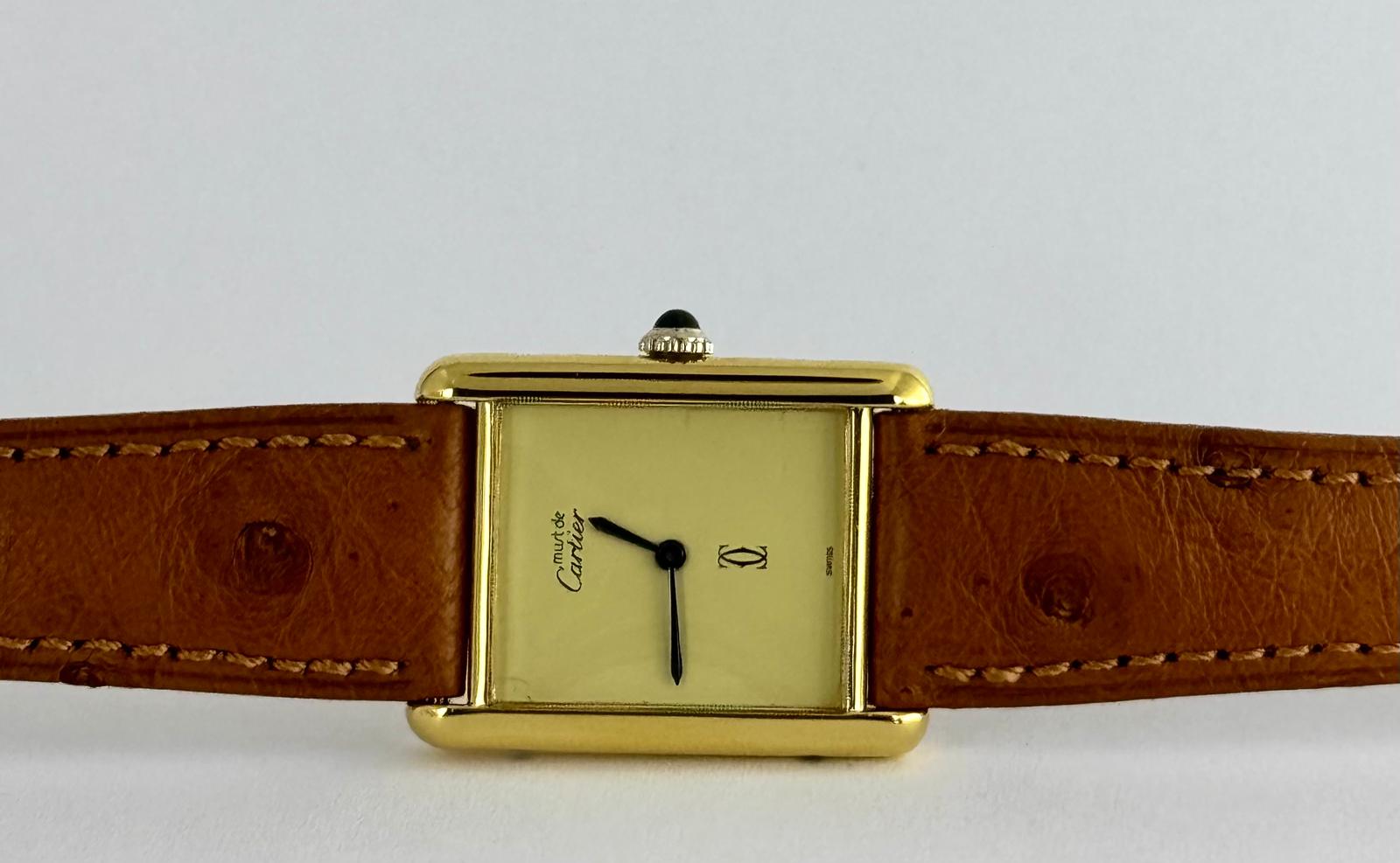 Tank Louis Cartier 18k Gold Plated 22X22mm After Service Manual Winding