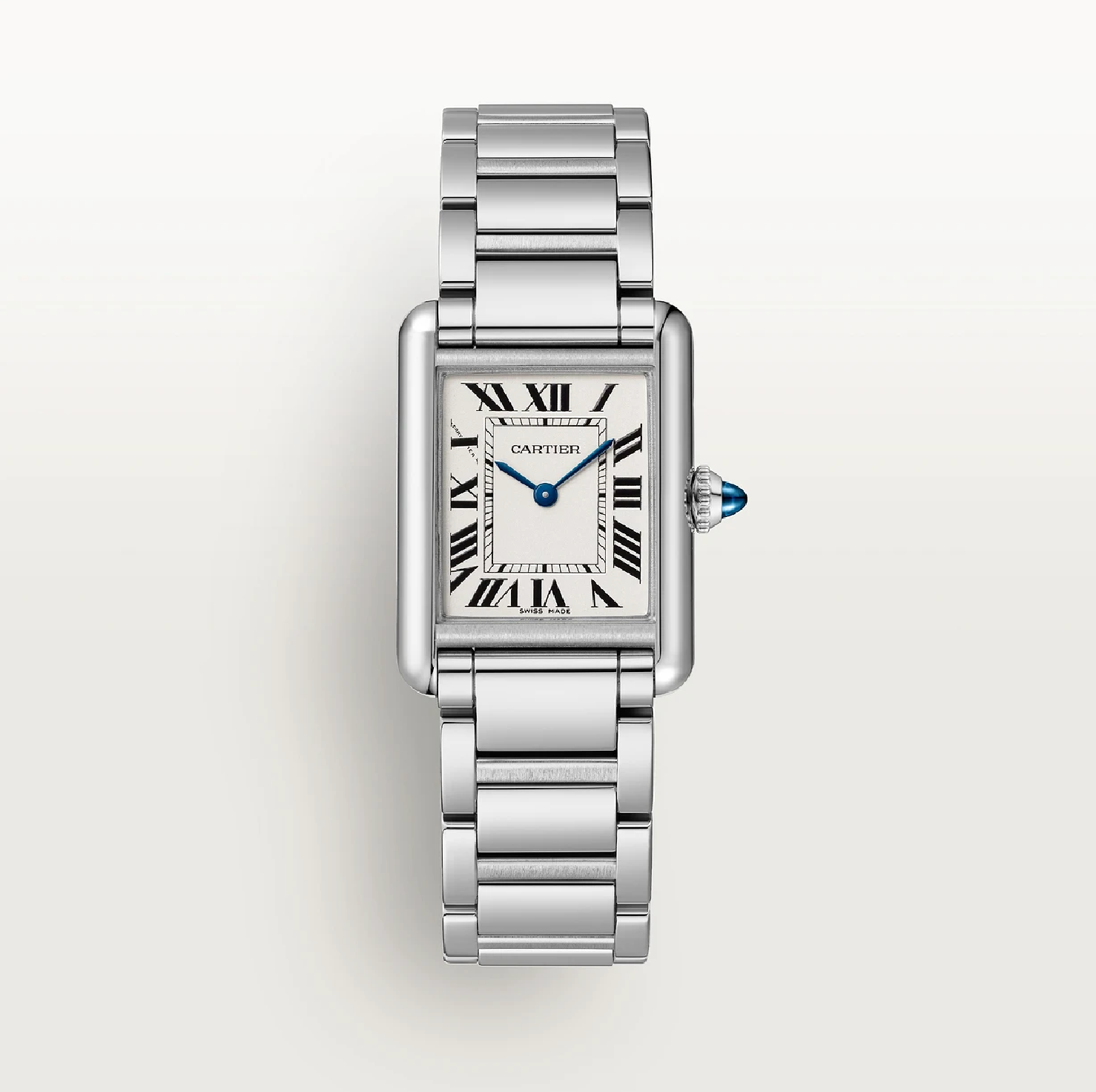 This elegant Tank Must de Cartier Small blends timeless design with the practical reliability of high autonomy quartz movement, crafted in full stainless steel for everyday luxury.