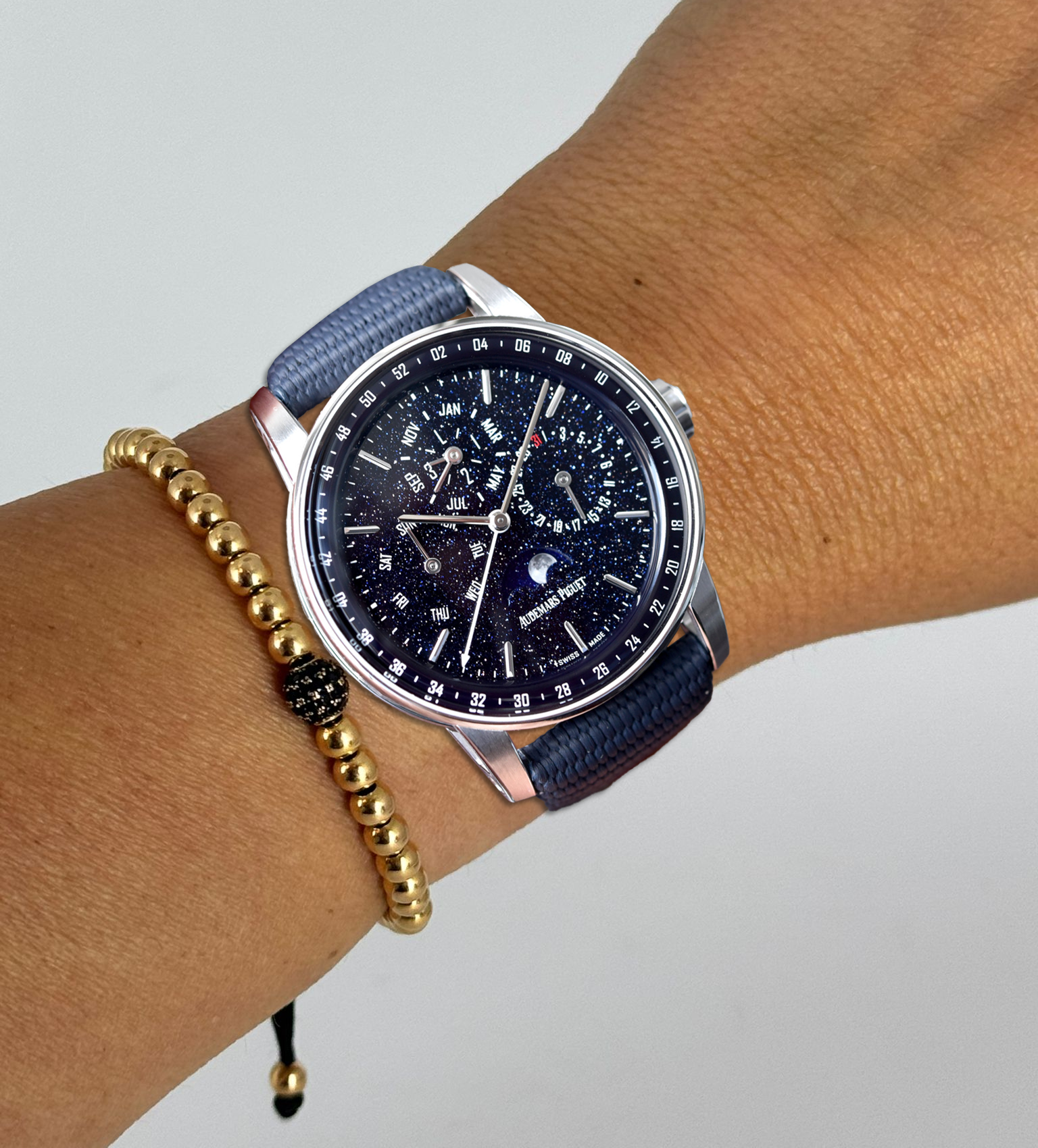 Ewiger Kalender mit Wochenanzeige, Wochentag, Datum, Mond, Monat, Schaltjahr, Stunden und Minuten.