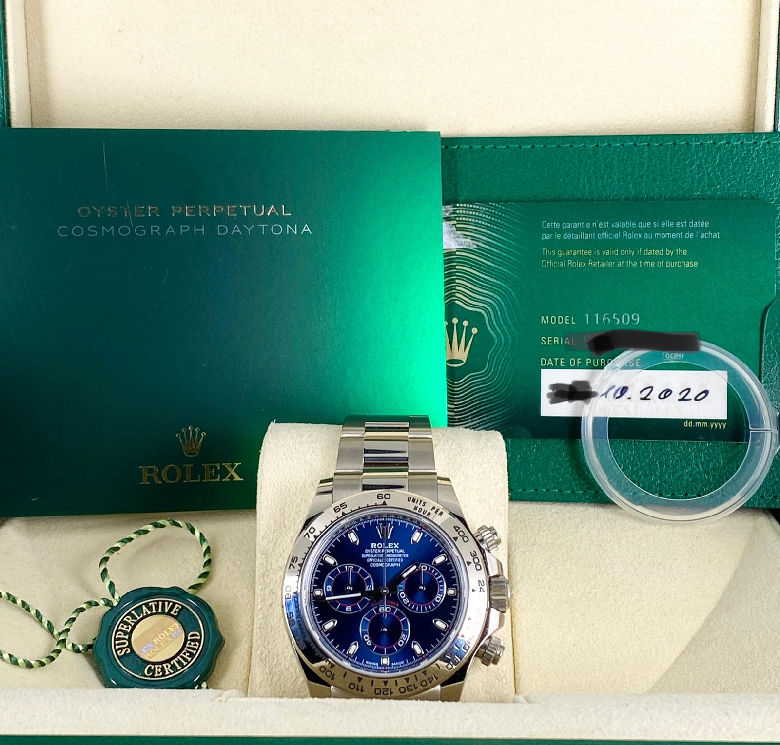 Rolex Daytona White Gold 2020 New Card Blue Dial Full set 116509