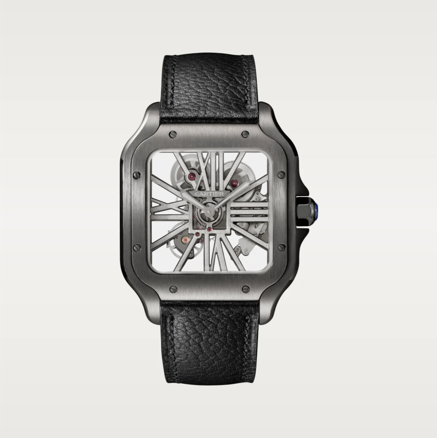 Santos de Cartier Skeleton Large Black ADLC Steel Manual Wind