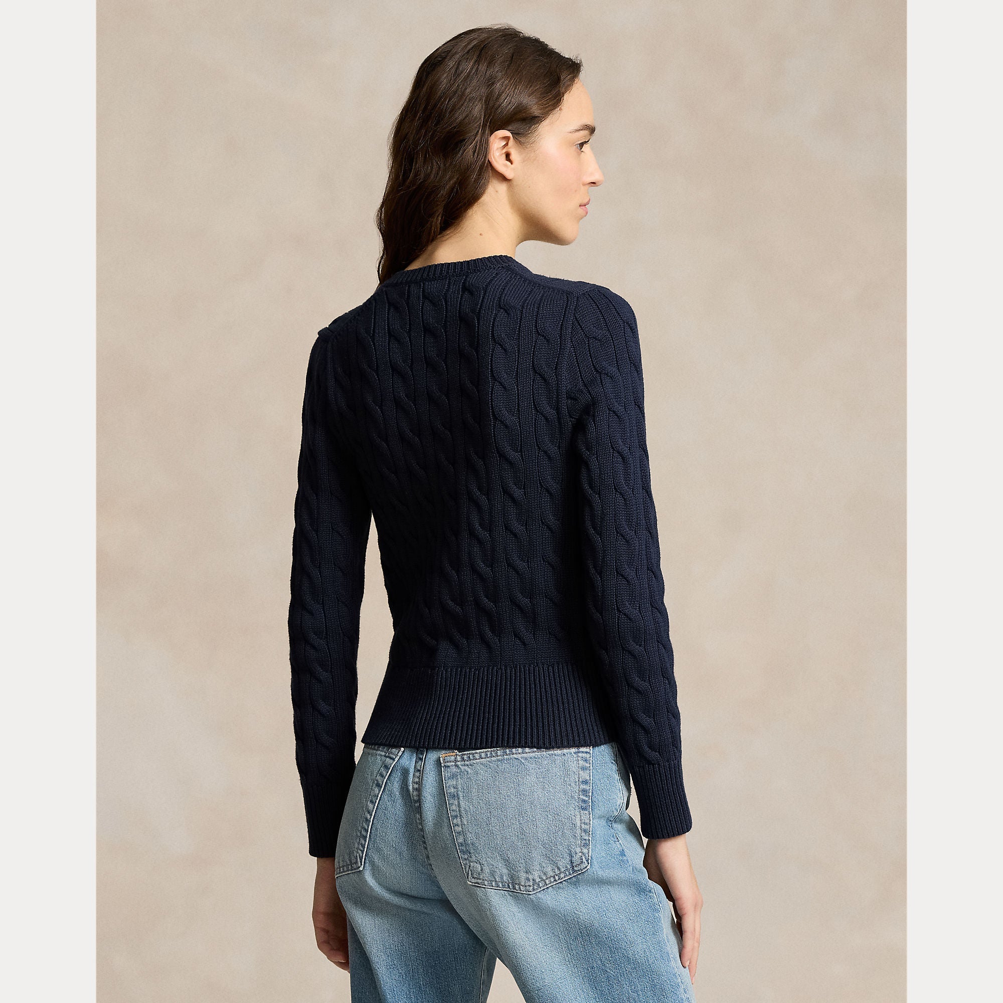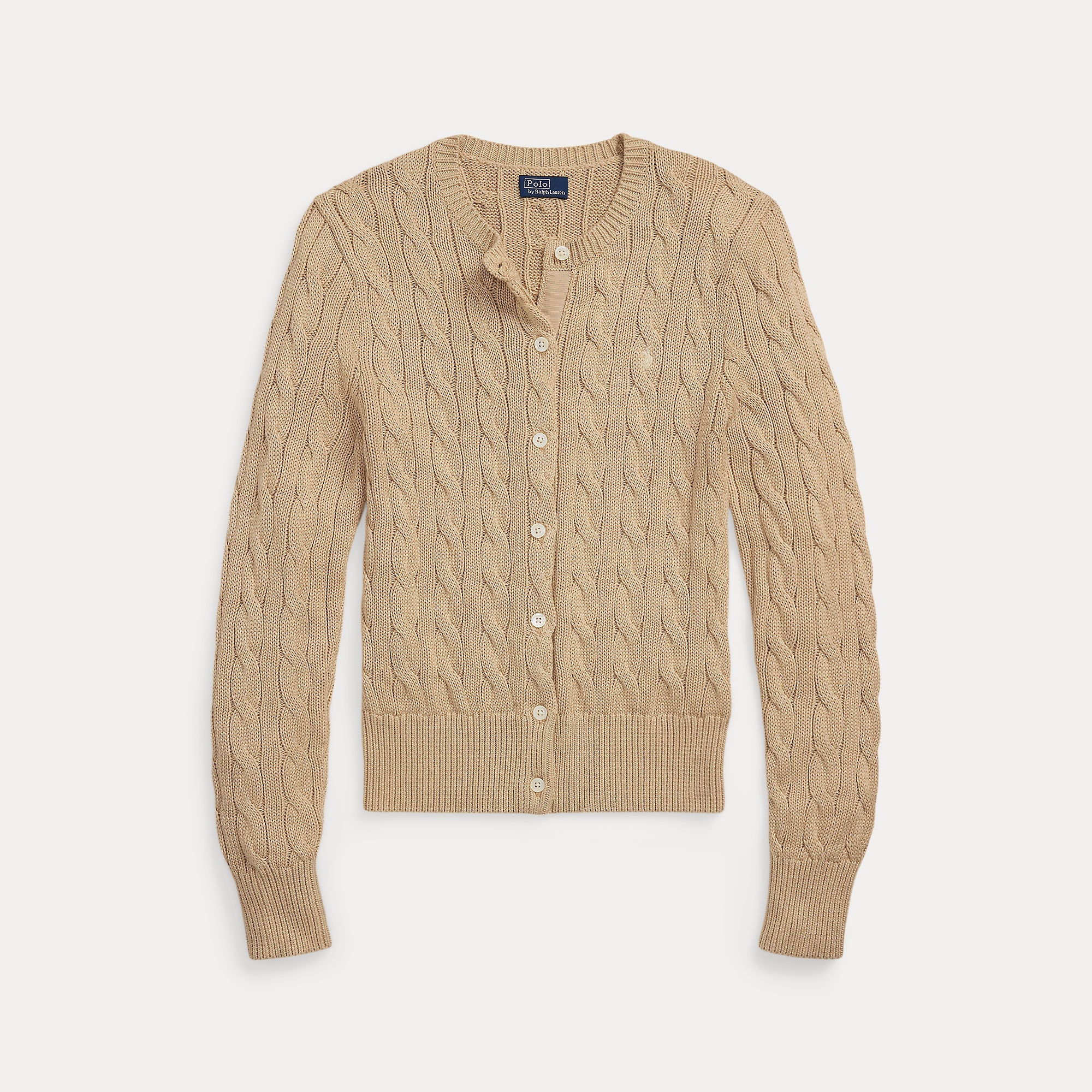 CABLE-KNIT COTTON CREWNECK CARDIGAN