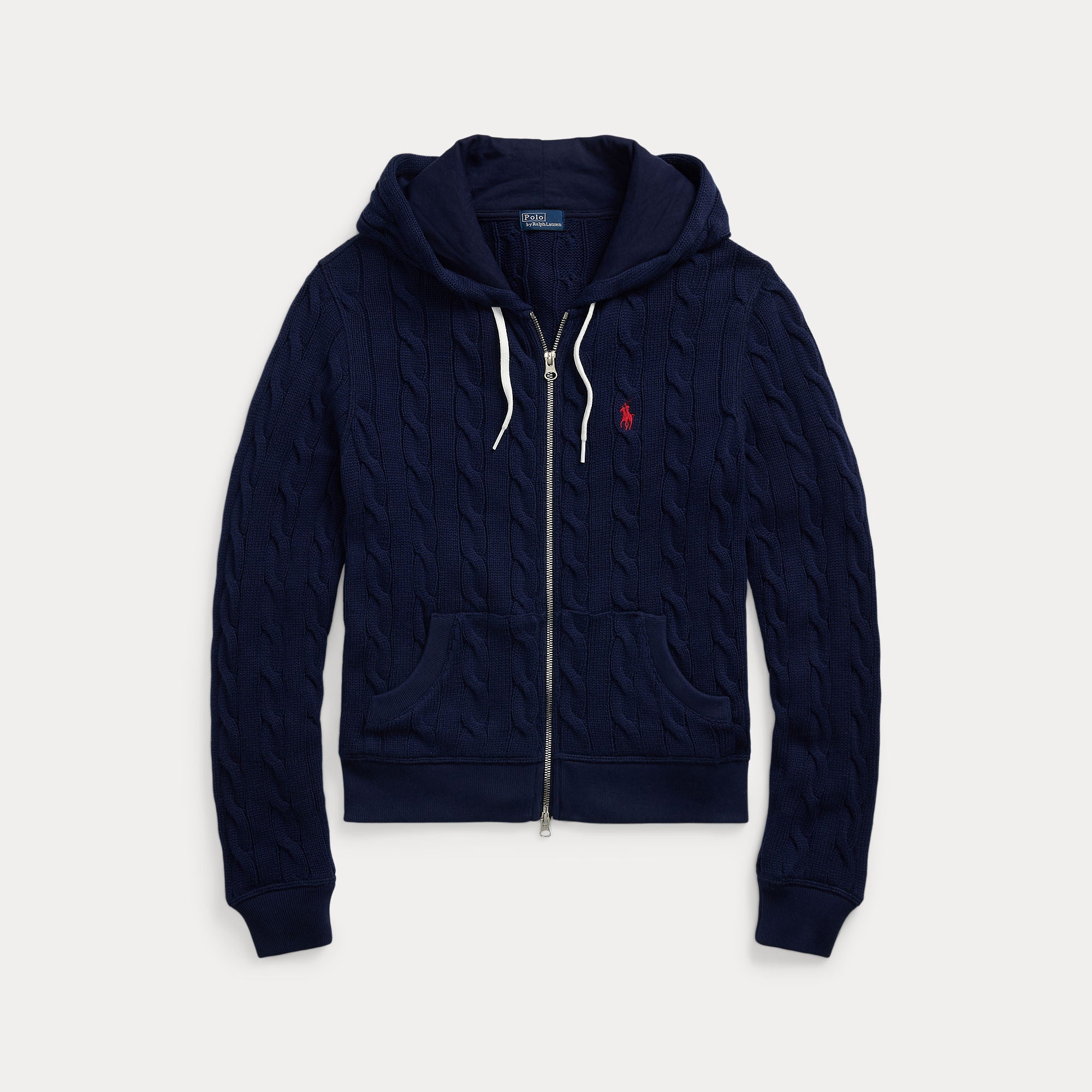 The versatile style of a full-zip hoodie meets Ralph Lauren’s signature cable-knit construction in this cotton layer, which is accented with our embroidered Pony at the chest.