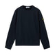 Maglione girocollo in misto lana e nylon con texture garzata, maglia rasata e fascia laterale a costine. Finezza 5.