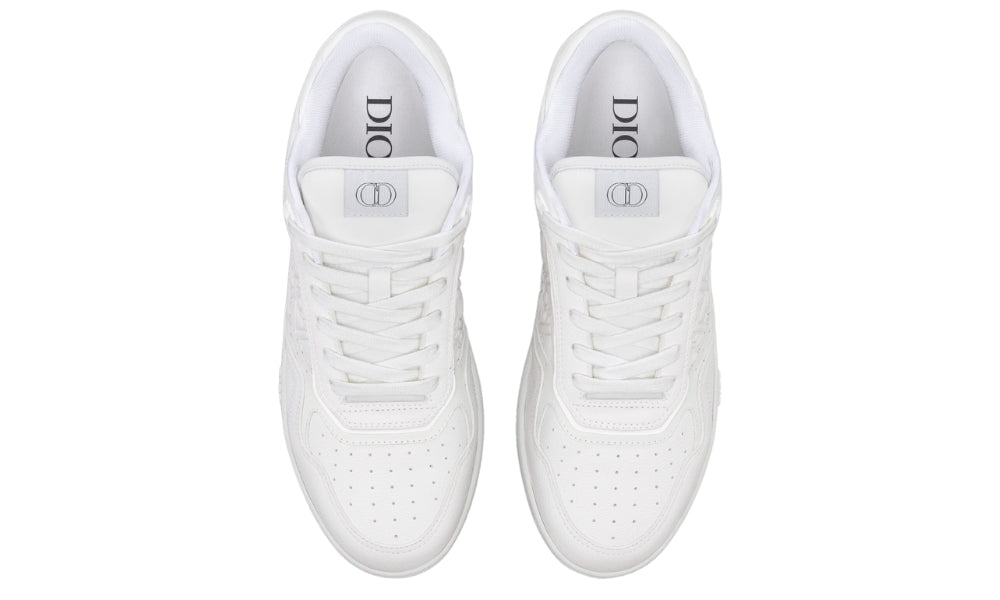 • The low-top B27 sneaker is a new must-have for the House. Made from white grained calfskin, this model is enhanced by tone-on-tone Dior Gravity leather inserts. An expression of the virtuosity of the workshops, the latter presents the iconic Dior Oblique pattern delicately embossed on calfskin. CD Icon eyelets, as well as numerous emblematic details, mark this sneaker on the white rubber sole, on the tongue and at the back. This low-top sneaker will enhance all your favorite outfits.