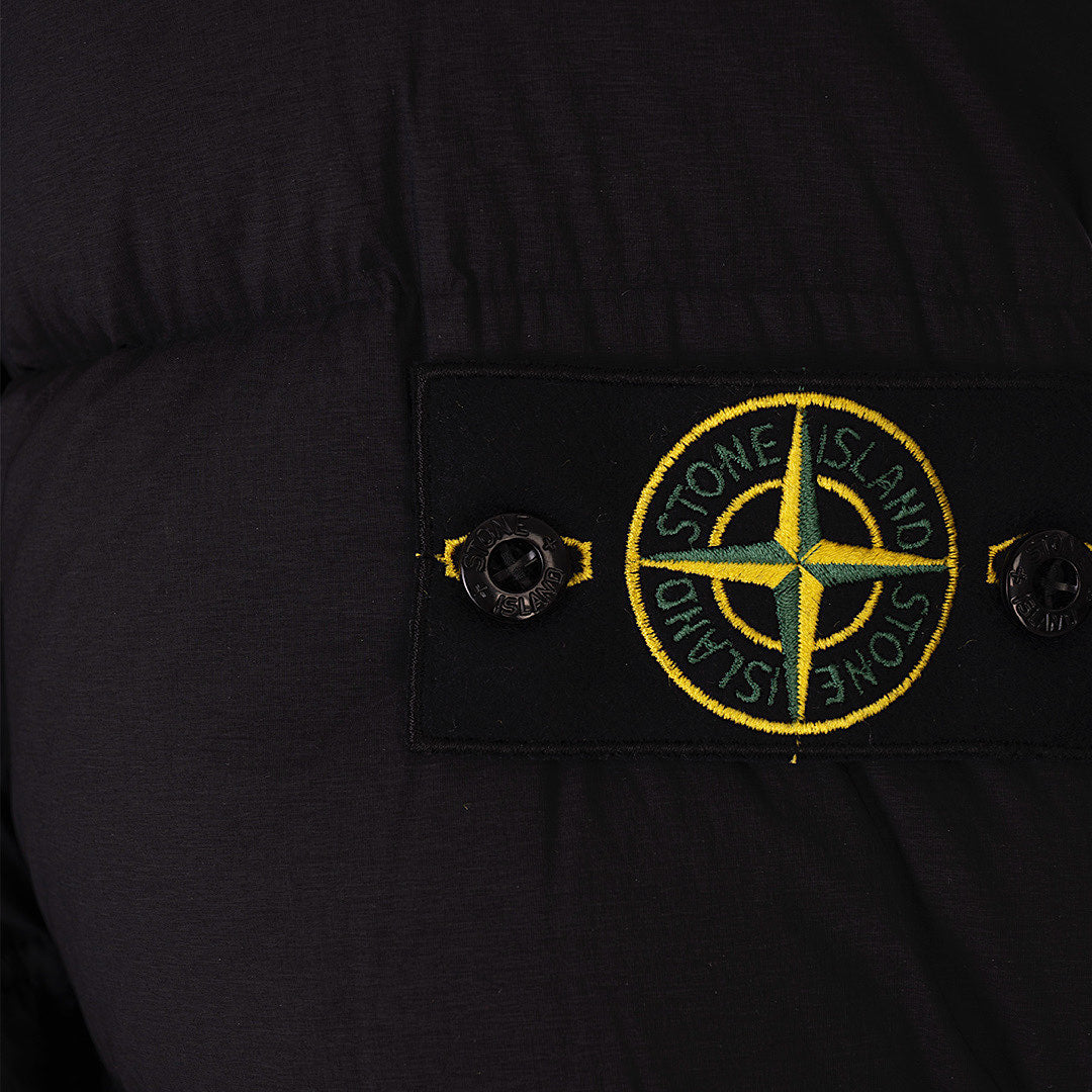 GIACCA BOMBER STONE ISLAND REALIZZATA IN INYLON IMBOTTITO TRAPUNTATO E CARATTERIZZATA DA COLLO ALTO, MANICHE LUNGHE, TASCHE OBLIQUE CON ZIP E POLSINI A COSTE. CHIUSURA FRONTALE CO ZIP A DOPPIO CURSORE. INCONICO BADGE STONE ISLAND SULLA MANICA.