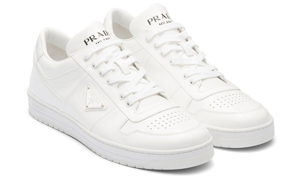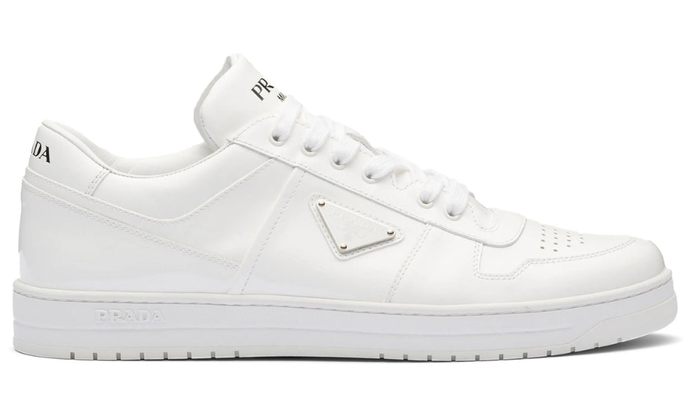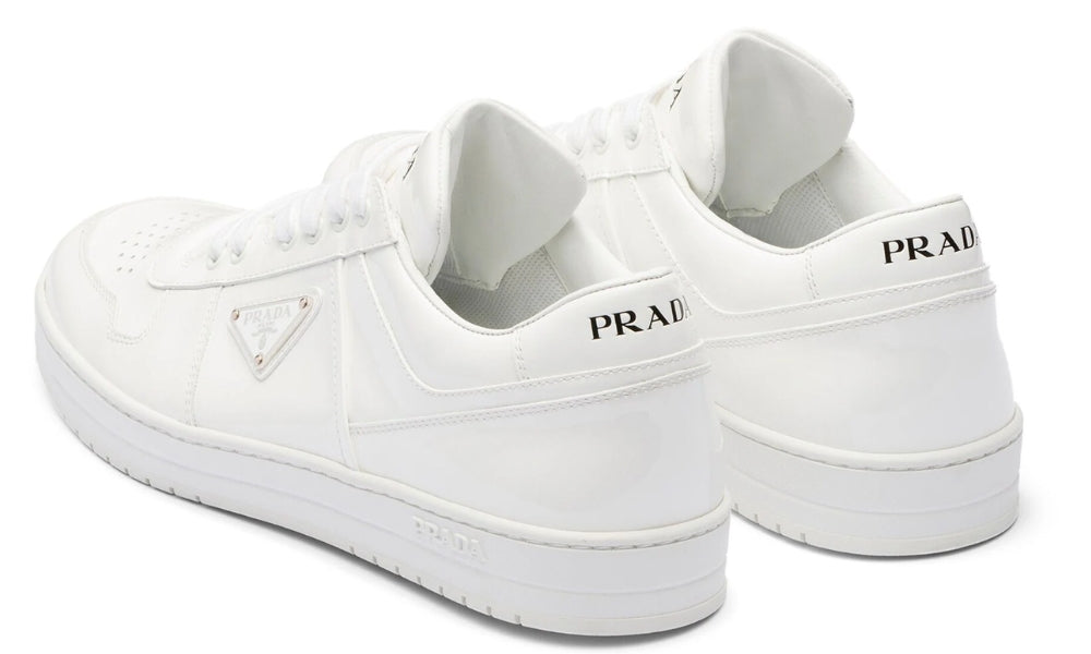 Drawing inspiration from classic basketball styles, Prada's Downtown sneakers are crafted from smooth leather. Boasting a tonal paneled design, the pair is accented with the house's enamel triangle logo on the side.