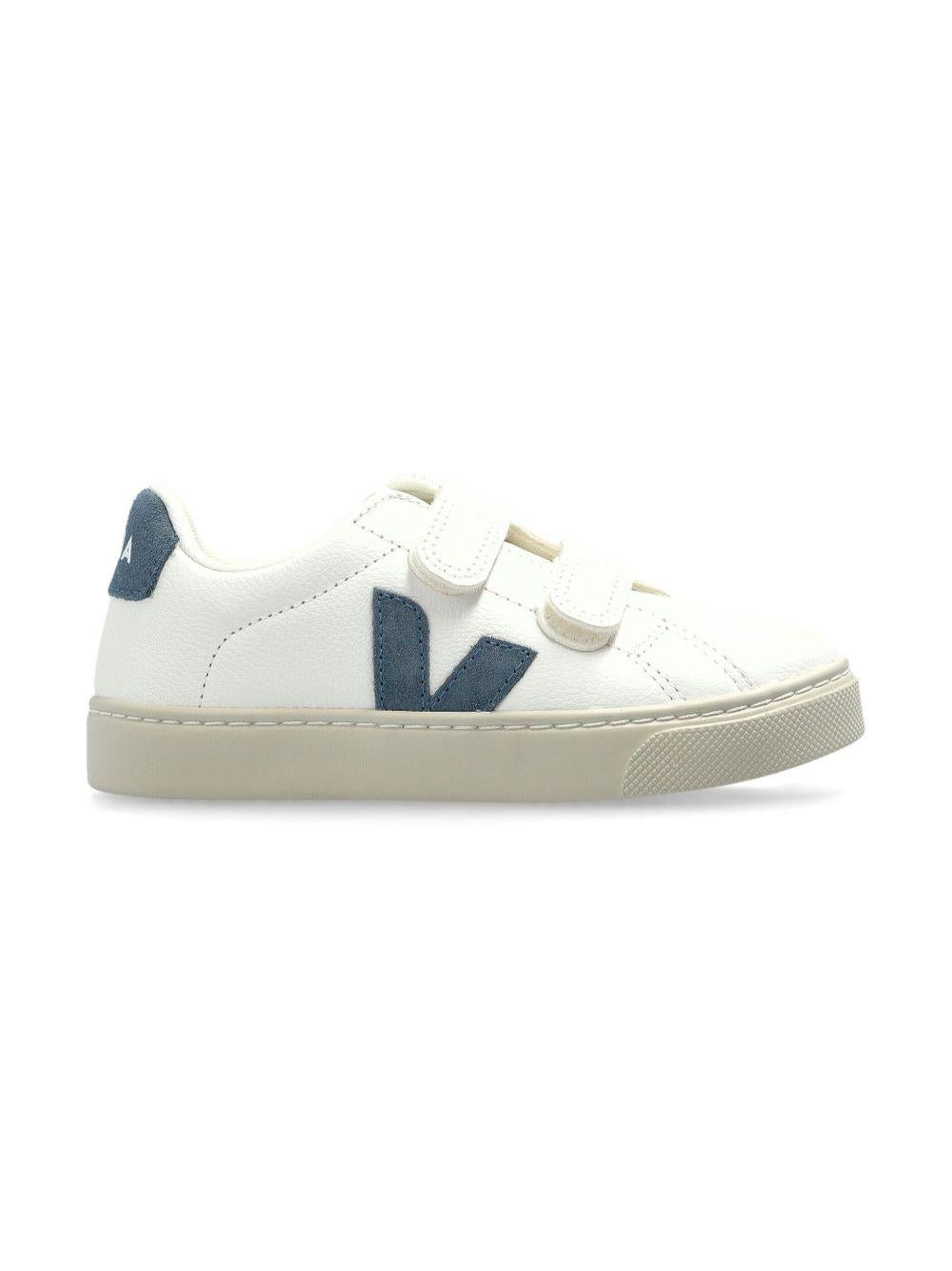 Il prodotto Sneakers per bambino VEJA Kids bianche con applicazione logo è disponibile sullo store online RubinoKids.com. Realizzato in pelle 100%. Il prodotto presenta un colore bianco, chiusura frontale a strappo, suola piatta in gomma, rinforzo sul tallone a contrasto con logo, soletta con logo. Varie taglie a catalogo, appartiene alla collezione VEJA Kids Autunno/Inverno 2025 ed è disponibile con consegna in 24/48h per l'Italia.