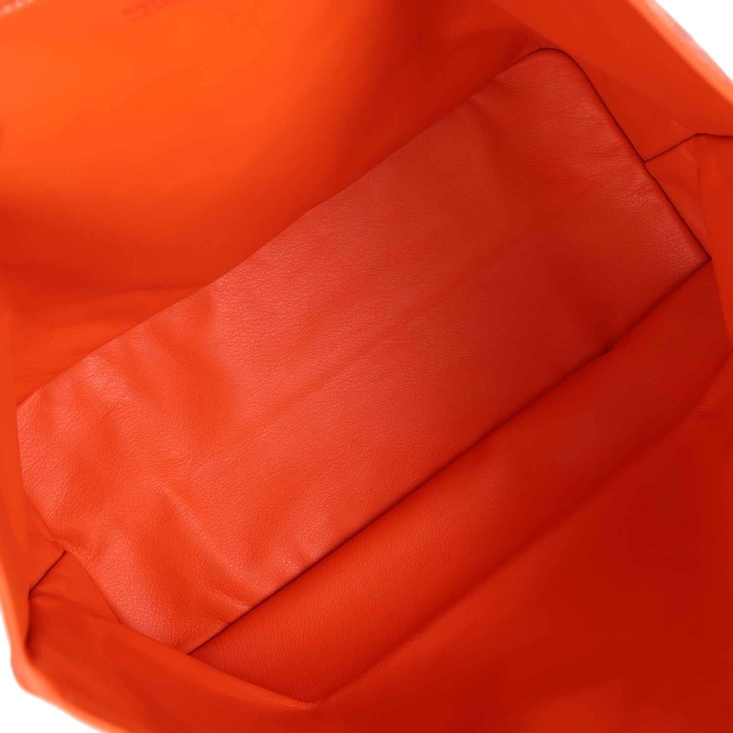 This Goyard Anjou PM Tote is of orange Chevroches calfskin leather and Goyardine coated canvas with palladium hardware, contrast stitching, reversible tote, and a detachable matching coin purse.