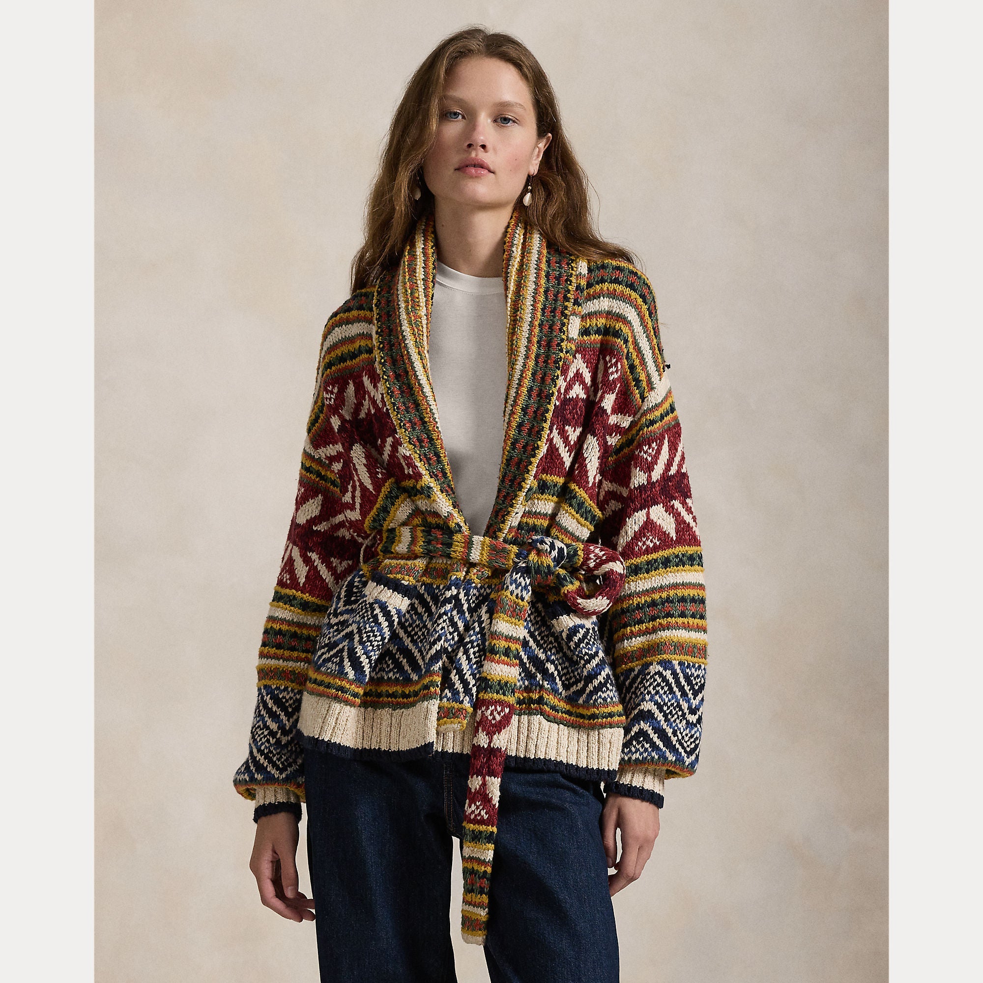 MULTI-PATTERN SHAWL CARDIGAN