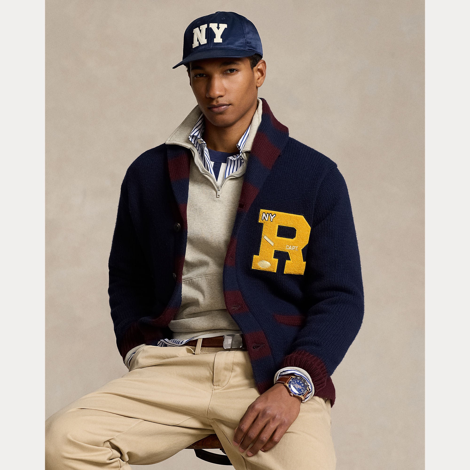 WOOL-BLEND LETTERMAN CARDIGAN