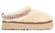 The Women's UGG Tazz Slipper with Heritage Braid in a Natural colorway replaces a suede upper with soft, curly sheepskin in a creamy hue. Red and black stitching creates the UGG Tasman braid embroidery around the sheepskin collar. A rear pull tab in glossy red makes sliding this comfortable shoe on and off even easier. The tonal sock liner is crafted from UGG plush and lyocell. A woven label with the UGG logo graces the insole.