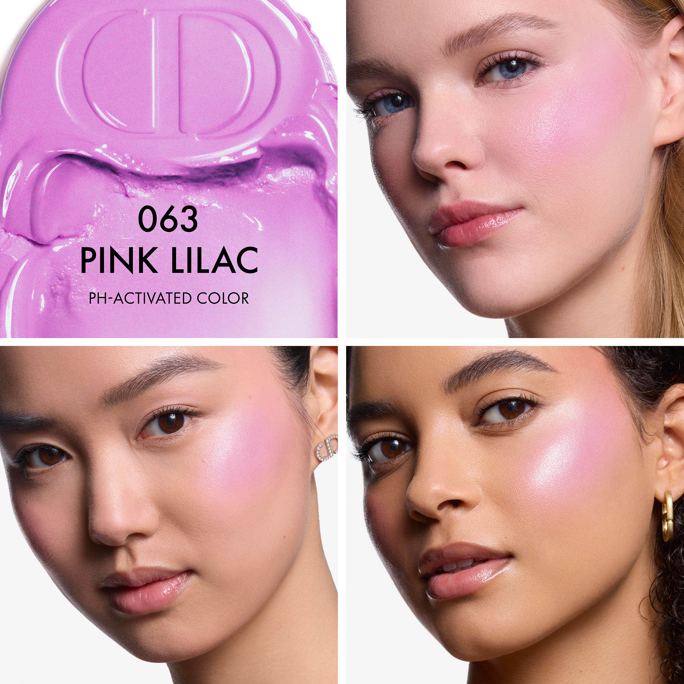 The Dior blush stick offers 12 hours¹ of 'custom' color and a dewy-glow finish that reflects light, for cheekbones that appear enhanced and plumped. Thanks to a unique technology,² each shade reacts to the skin's pH and takes on cool pink or warm coral undertones.