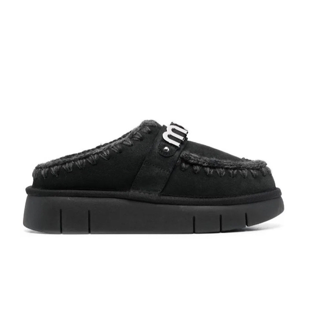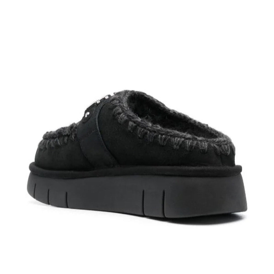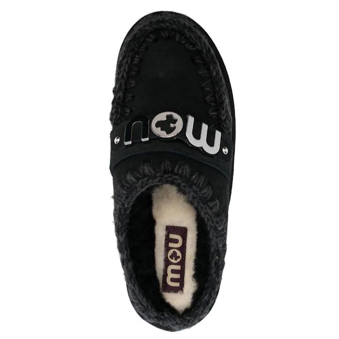 Slipper Mou modello Bounce Clog pelle di montone nera.