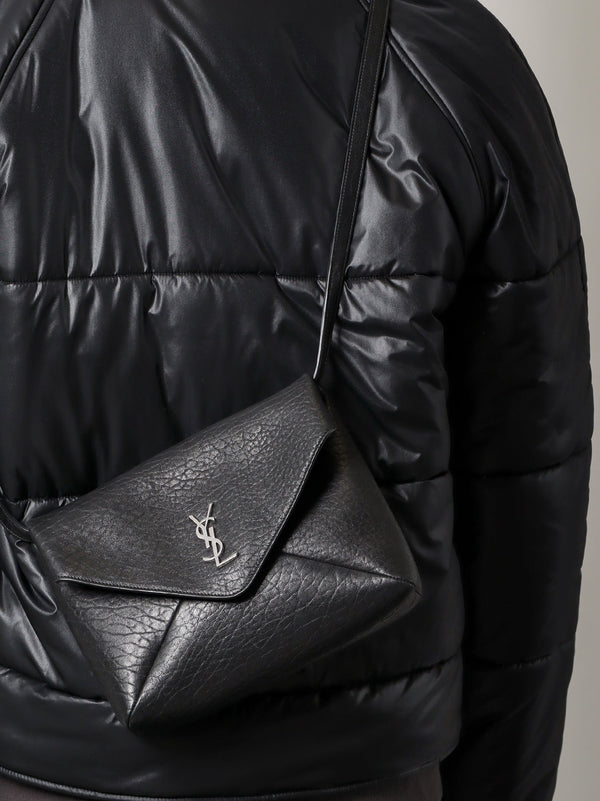 Messenger Envelope Leather Shoulder Bag with Metal Monogram on the front