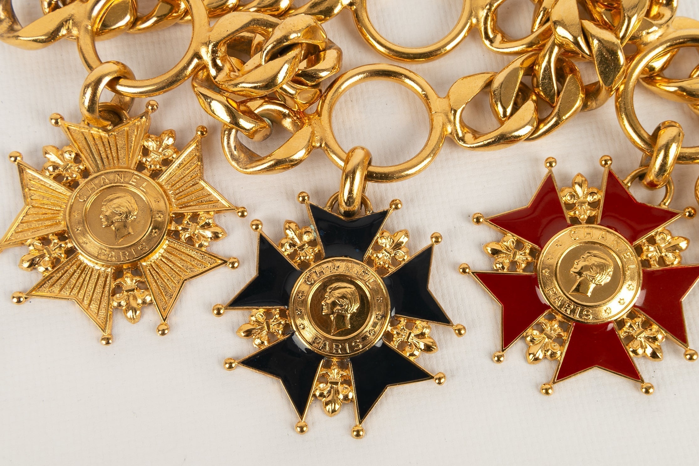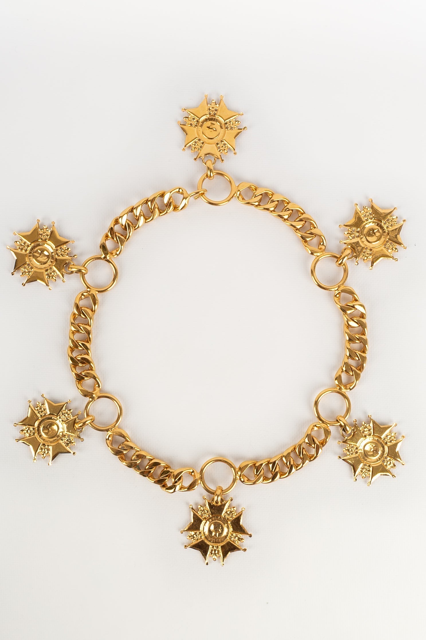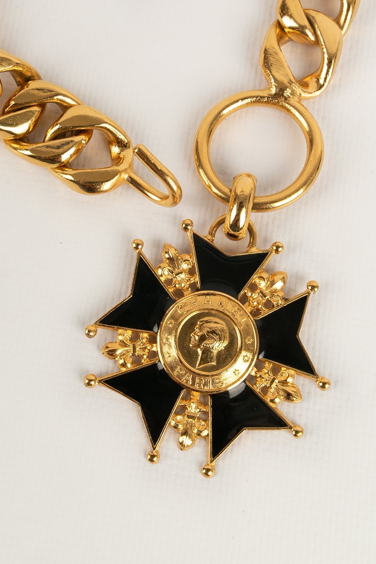 CHANEL -Ceinture en métal doré et émail multicolore. A signaler, l'émail est manquant sur l'une des croix.
