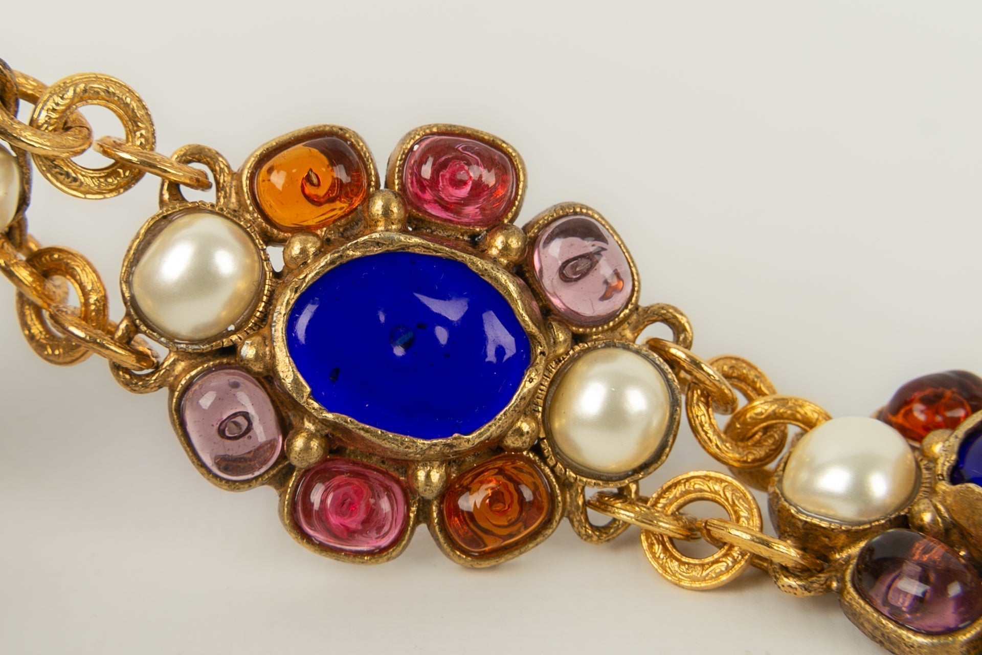 CHANEL - Ceinture en métal doré, pâte de verre et cabochons nacrés. Collection 1984.