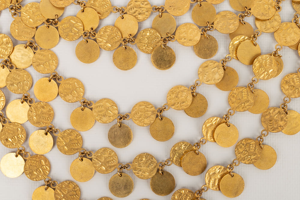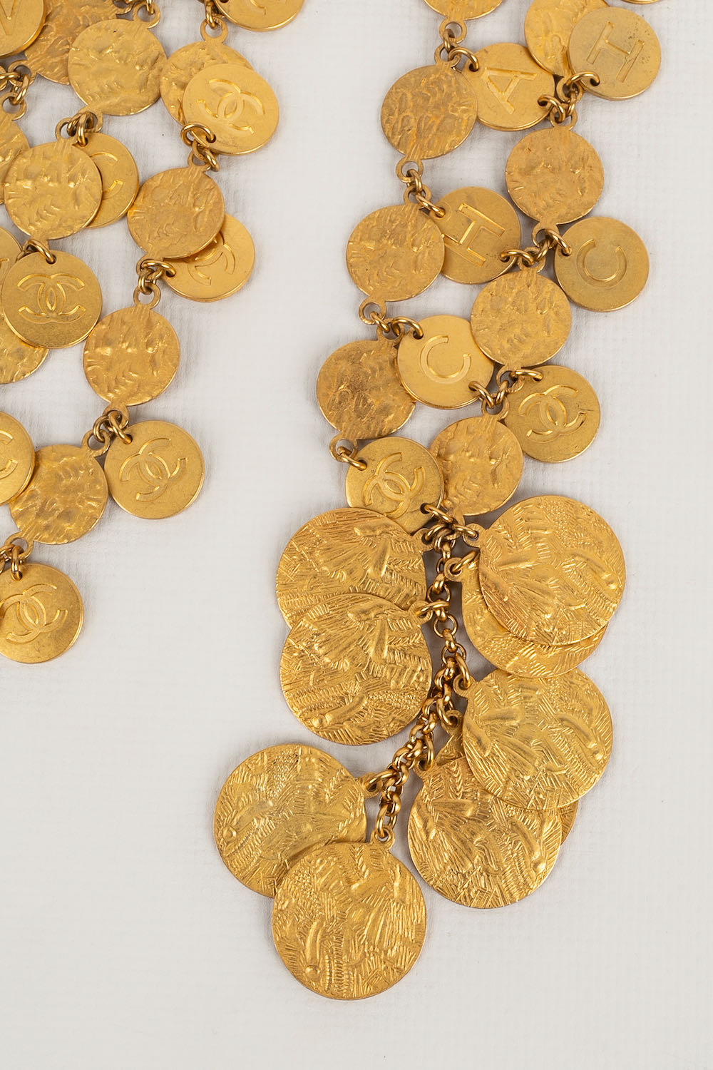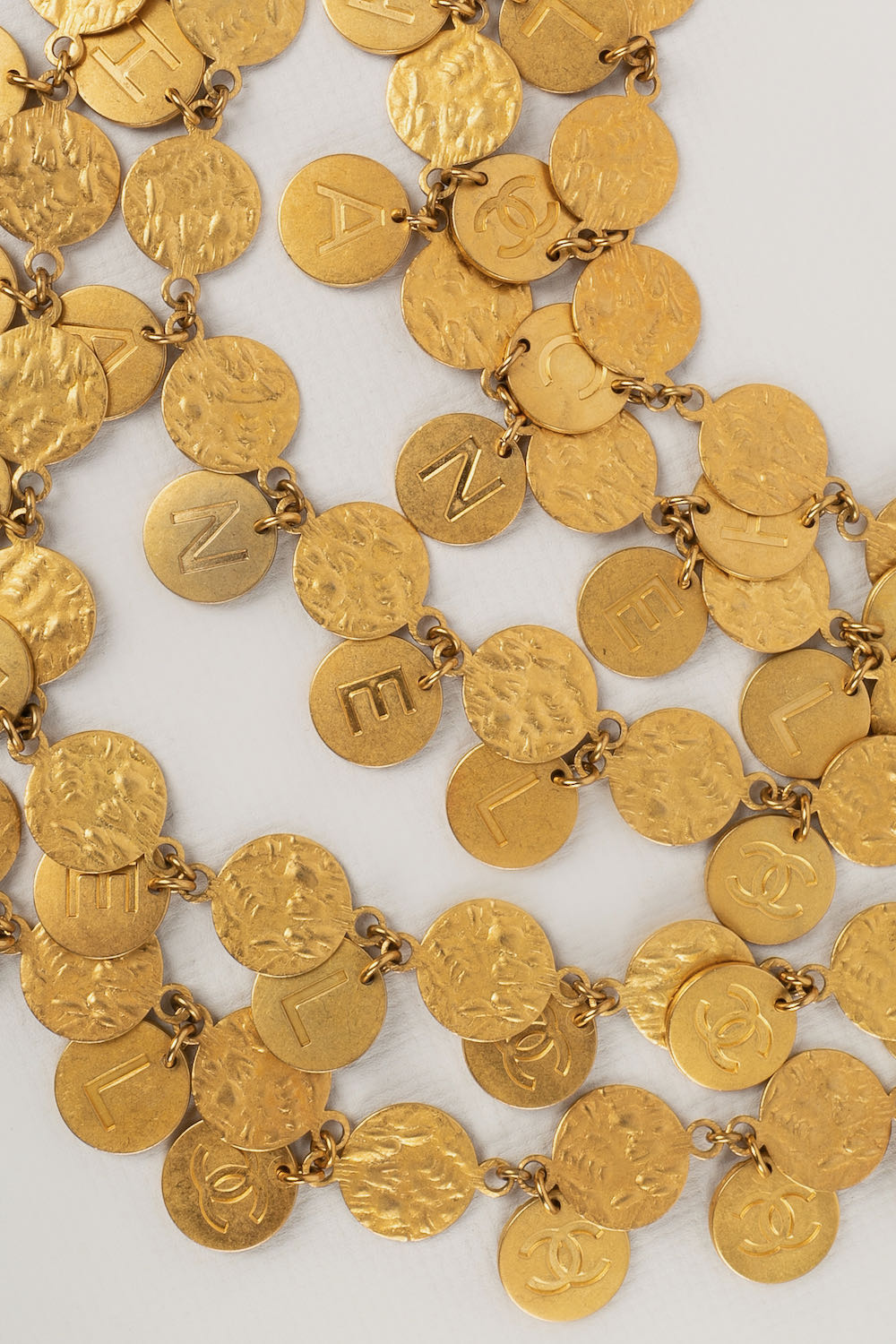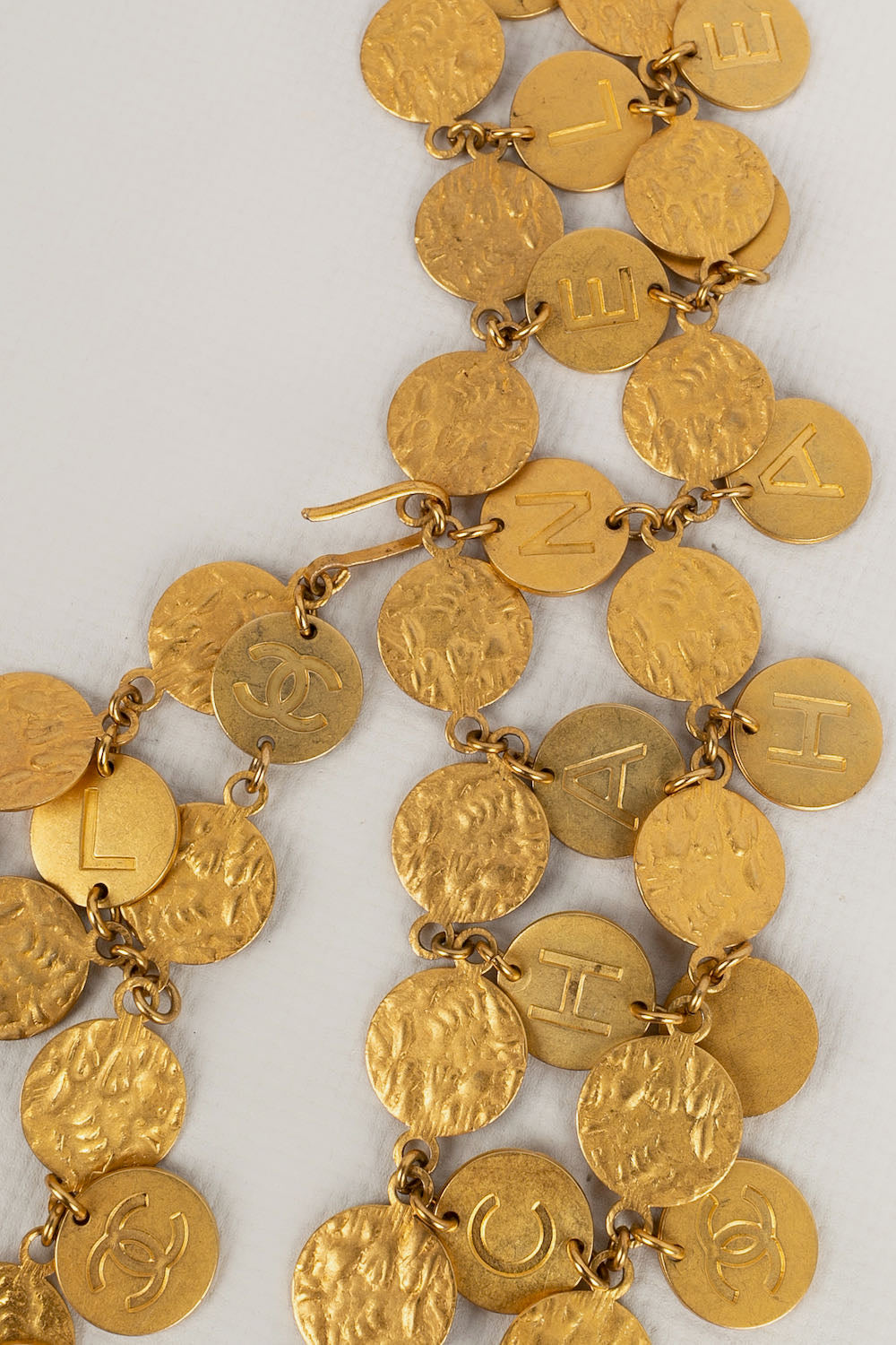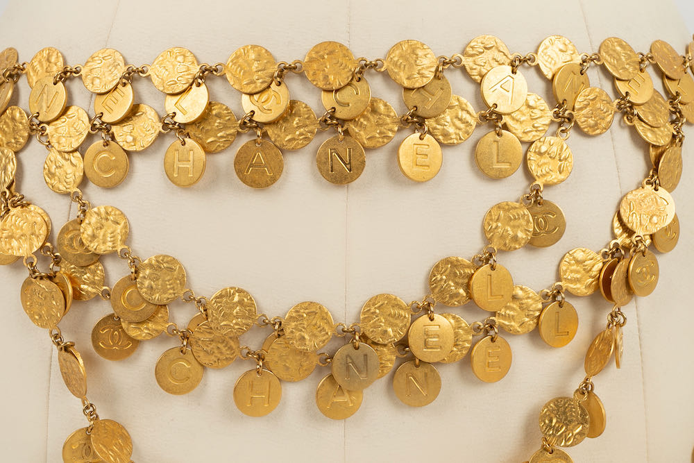 CHANEL -(Made in France) Ceinture de pièces rondes en métal doré gravé, martelé. Collection Printemps-Été 1993.