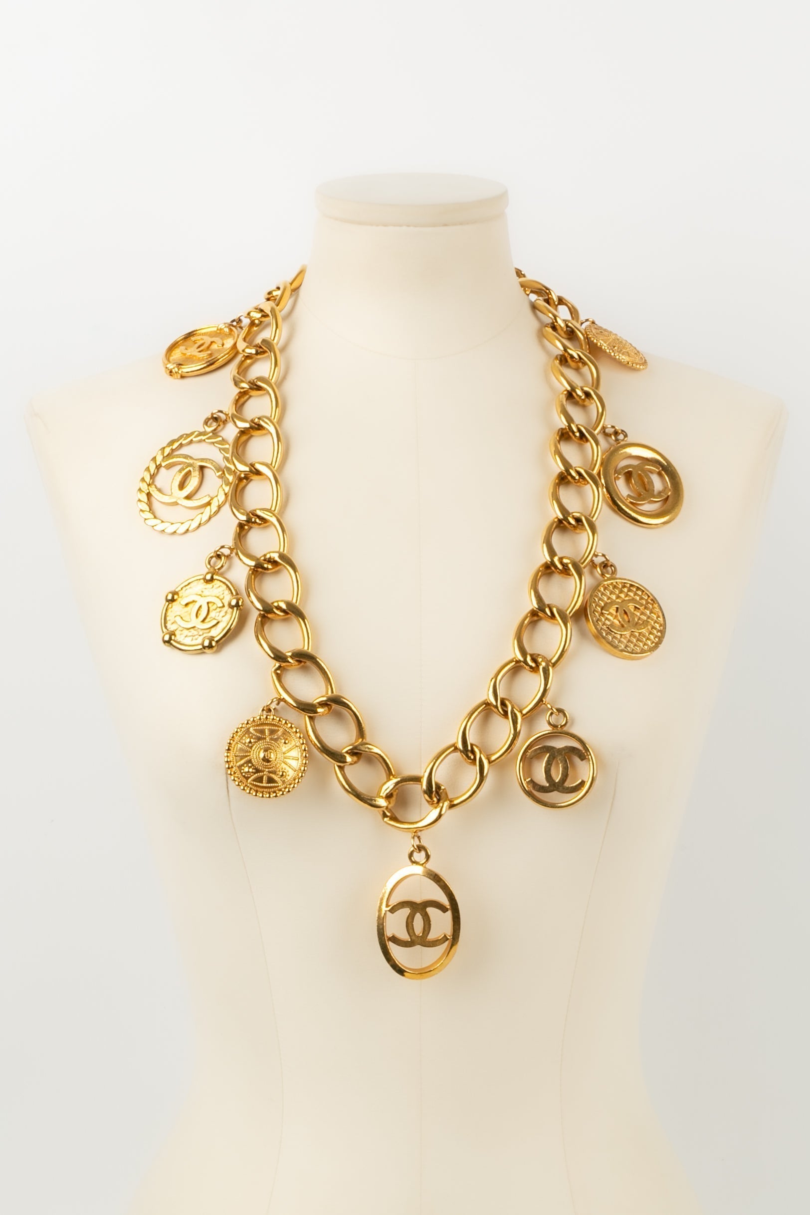 CHANEL -(Made in France) Ceinture breloques en métal doré. Collection Printemps/Eté 1993.