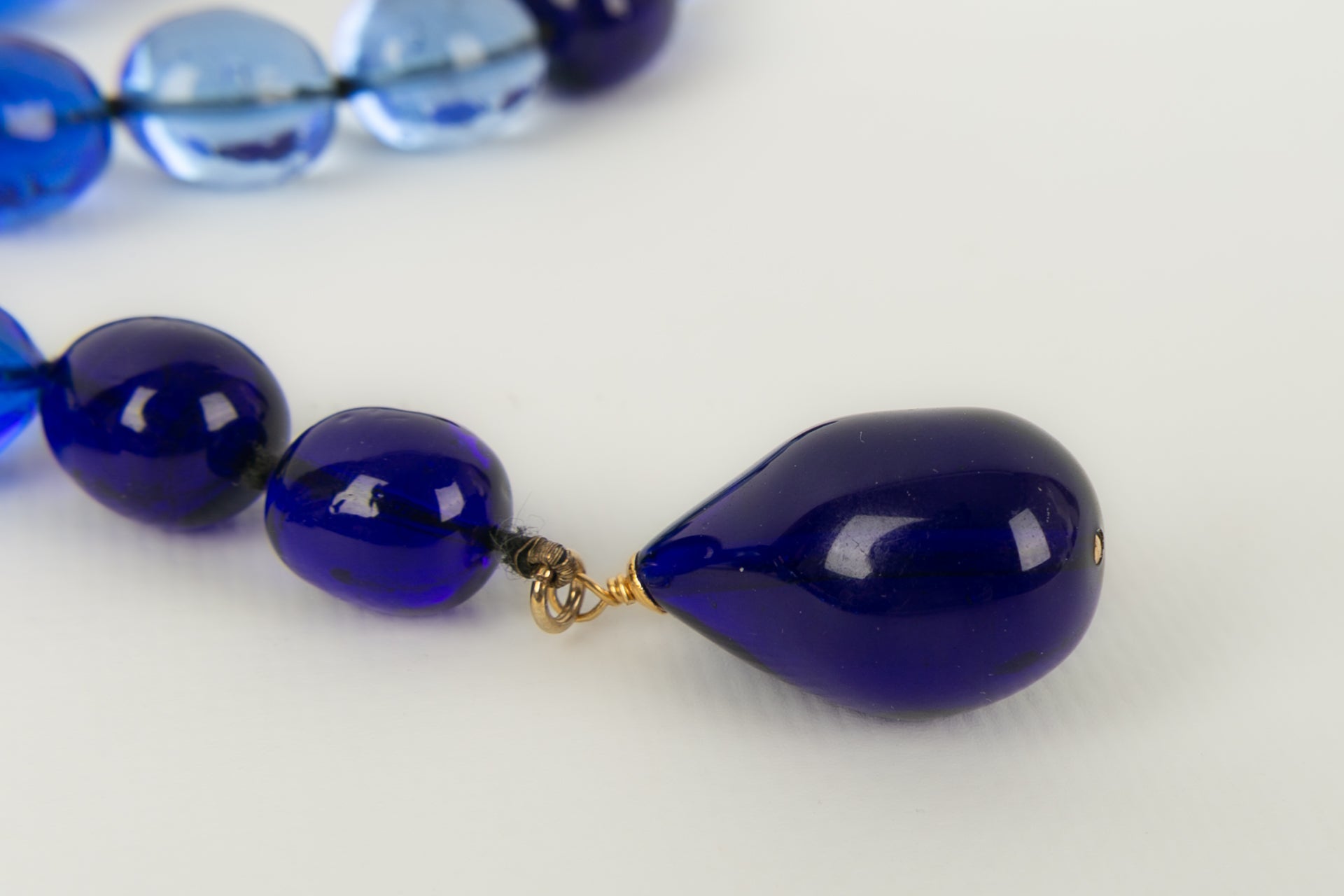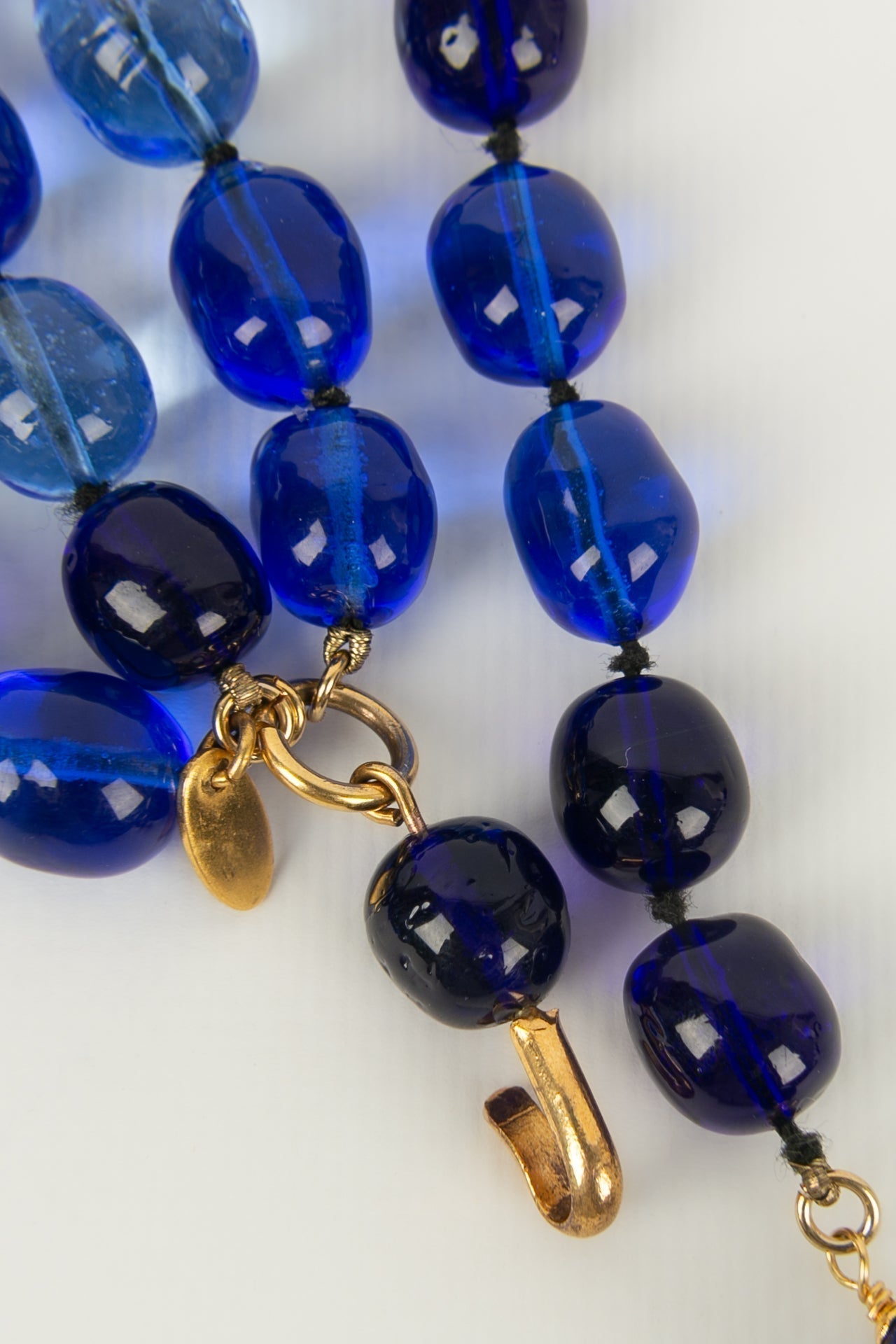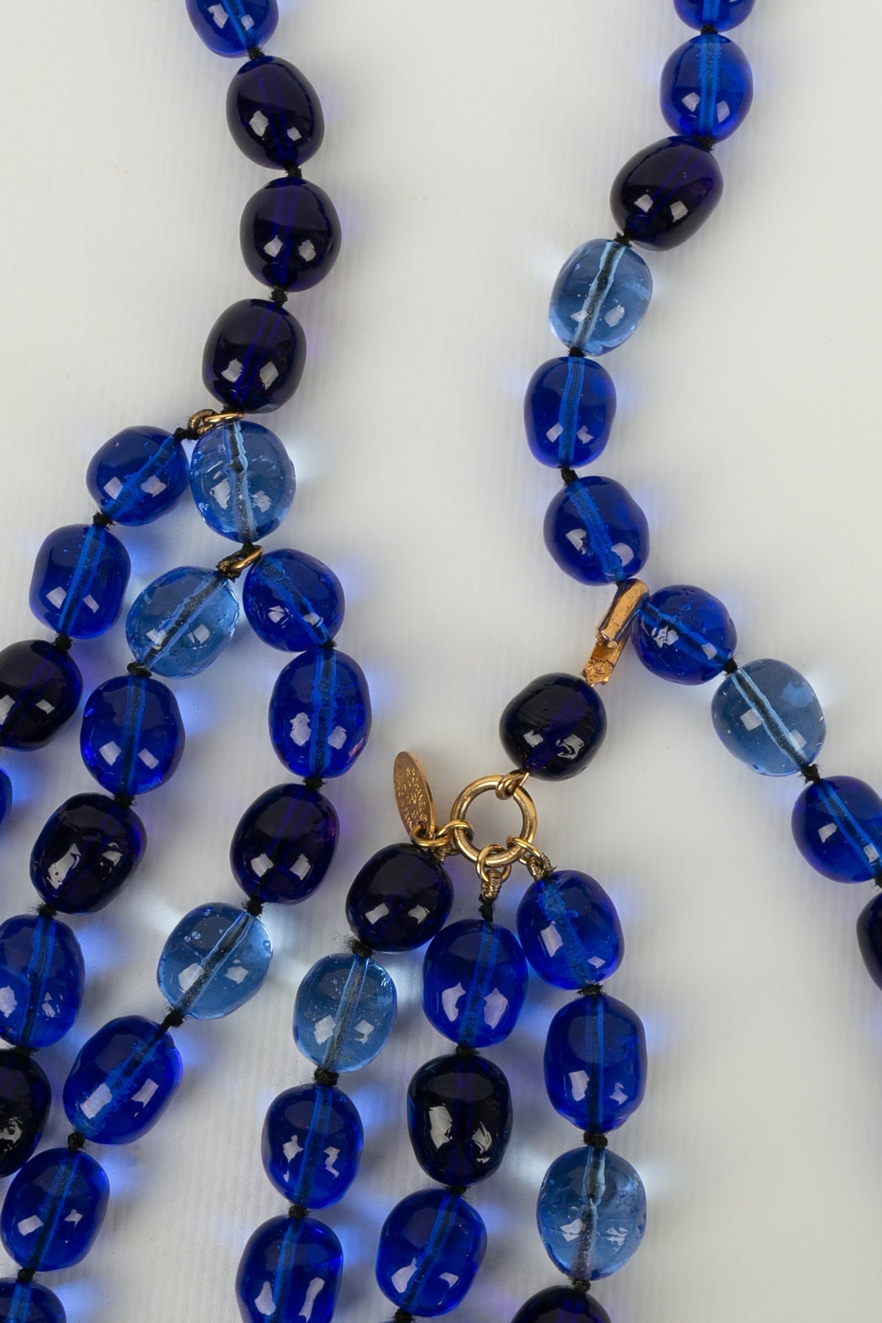 CHANEL -(Made in France) Ceinture de perles de verre bleues. Collection Automne/Hiver 1992.