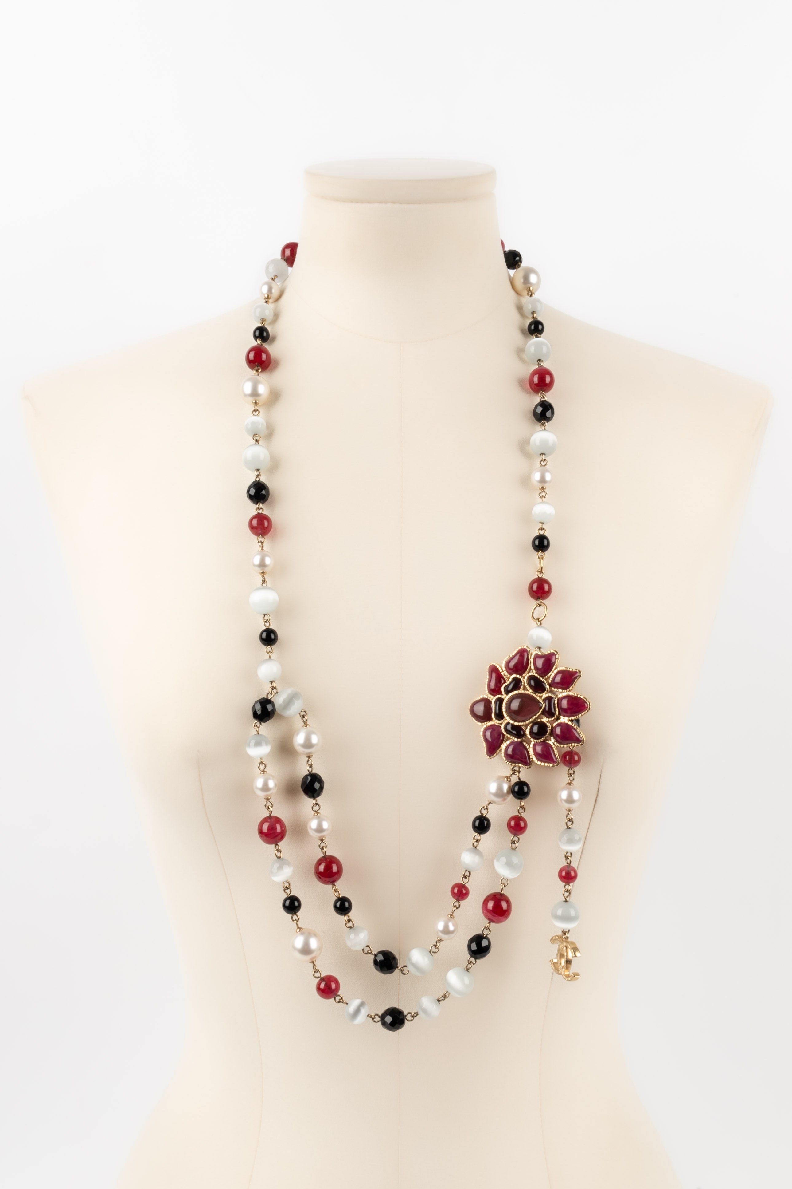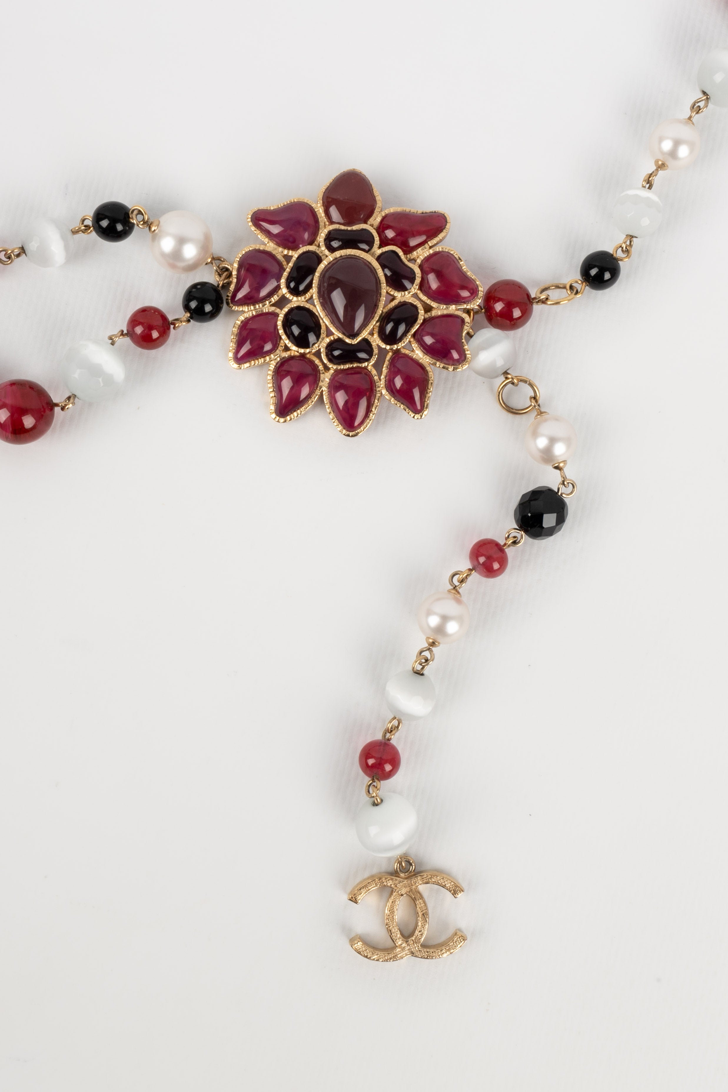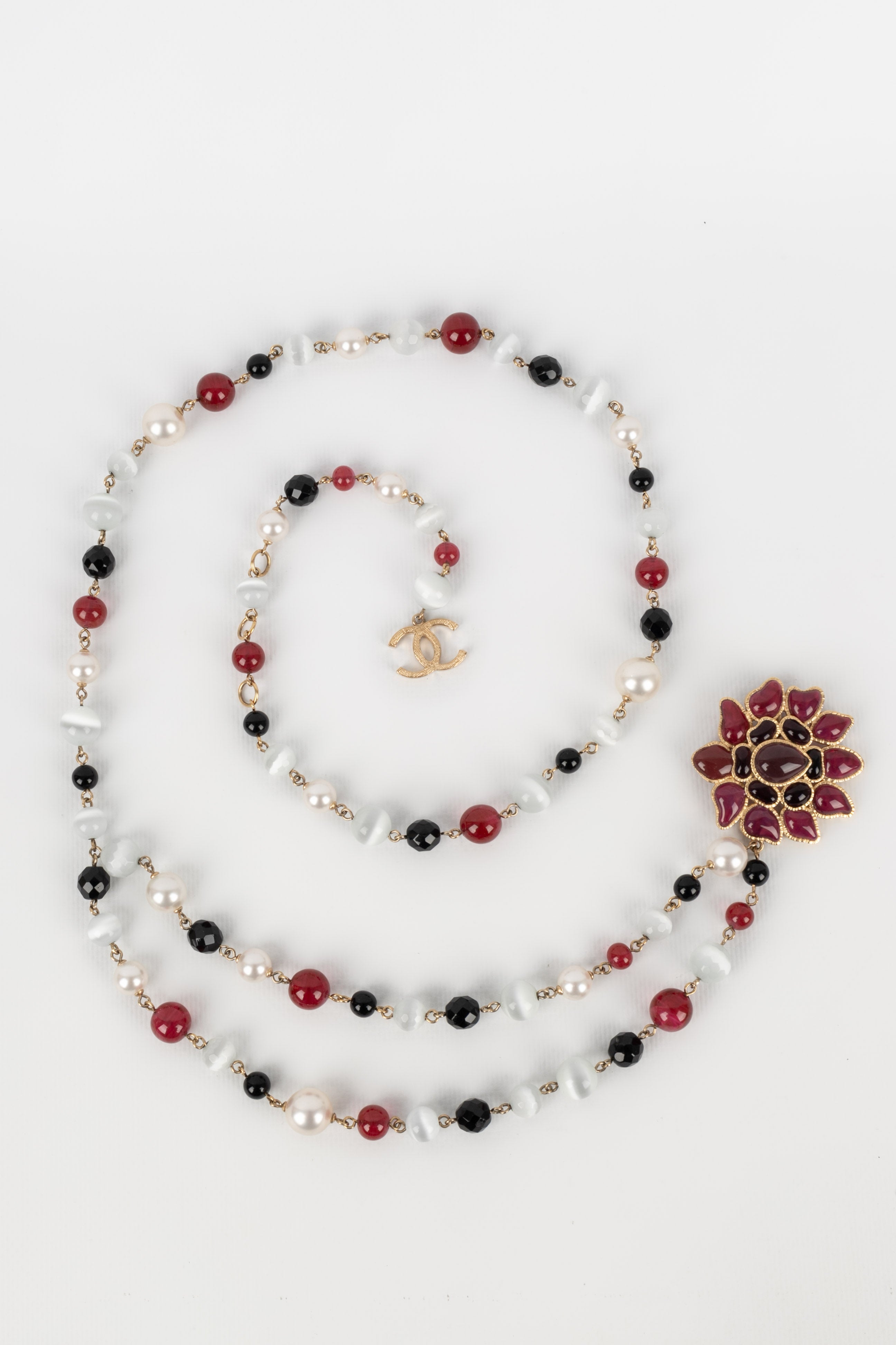 CHANEL - (Made in France) Ceinture de perles fantaisies et sa boucle fleur en pâte de verre. Collection Automne-Hiver 2007.