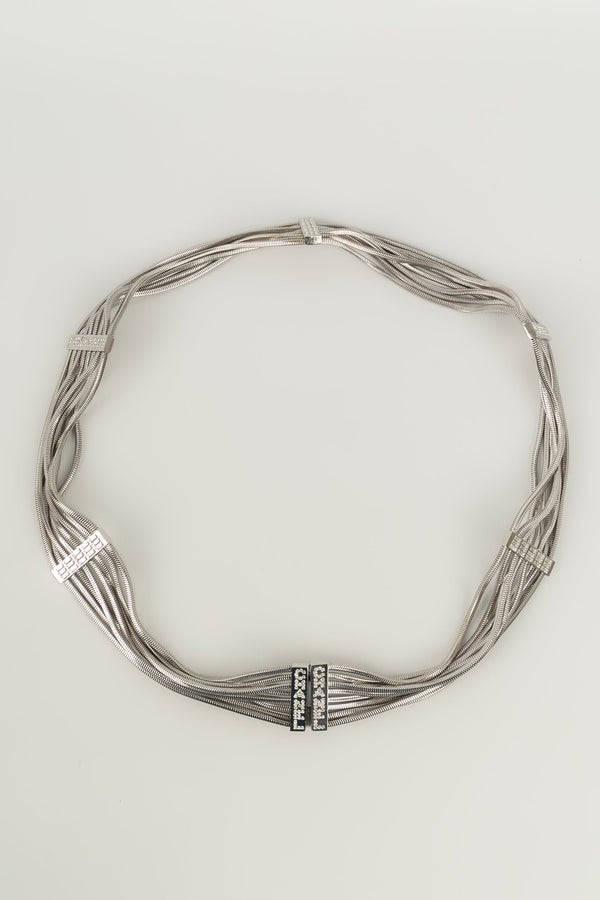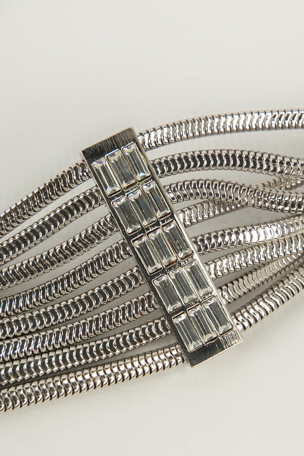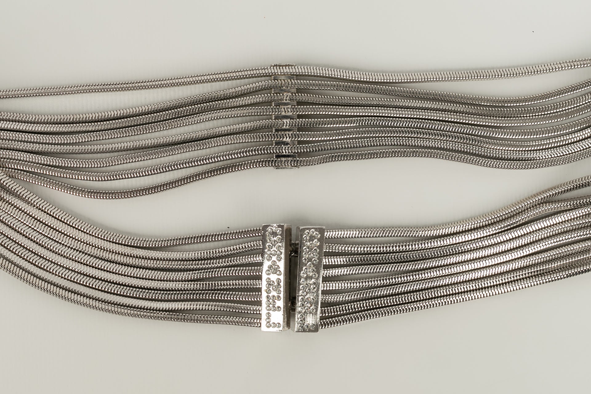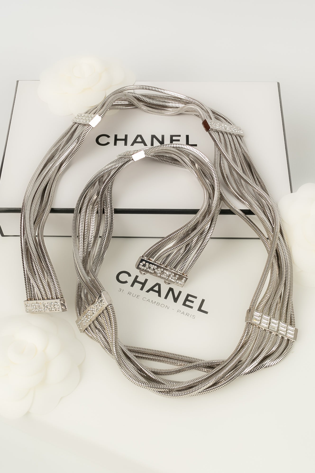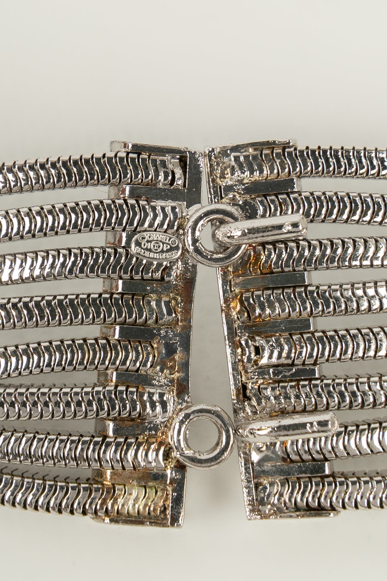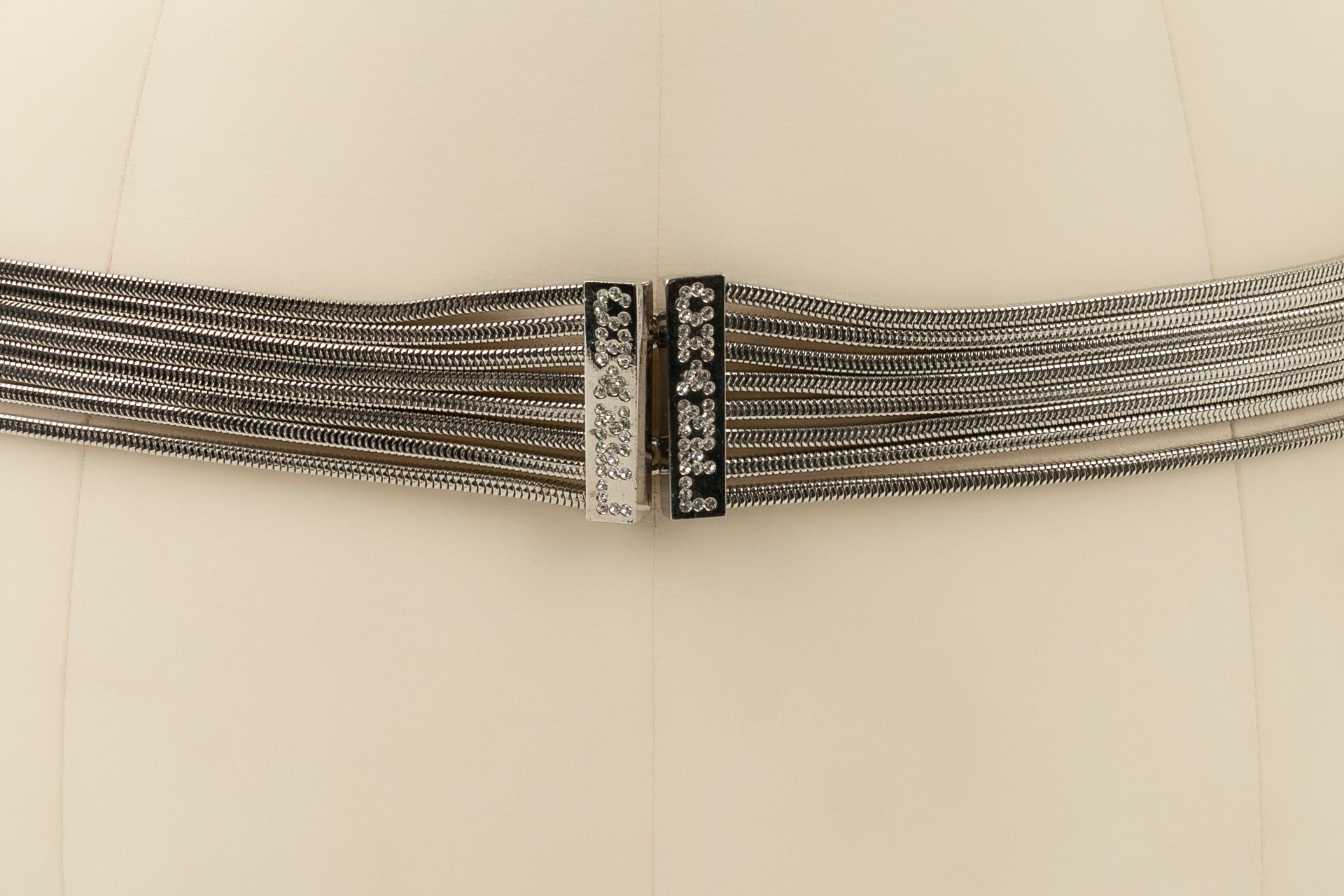 CHANEL - (Made in France) Ceinture souple en métal argenté et strass de Swarovski. Collection Printemps-Eté 2001.
