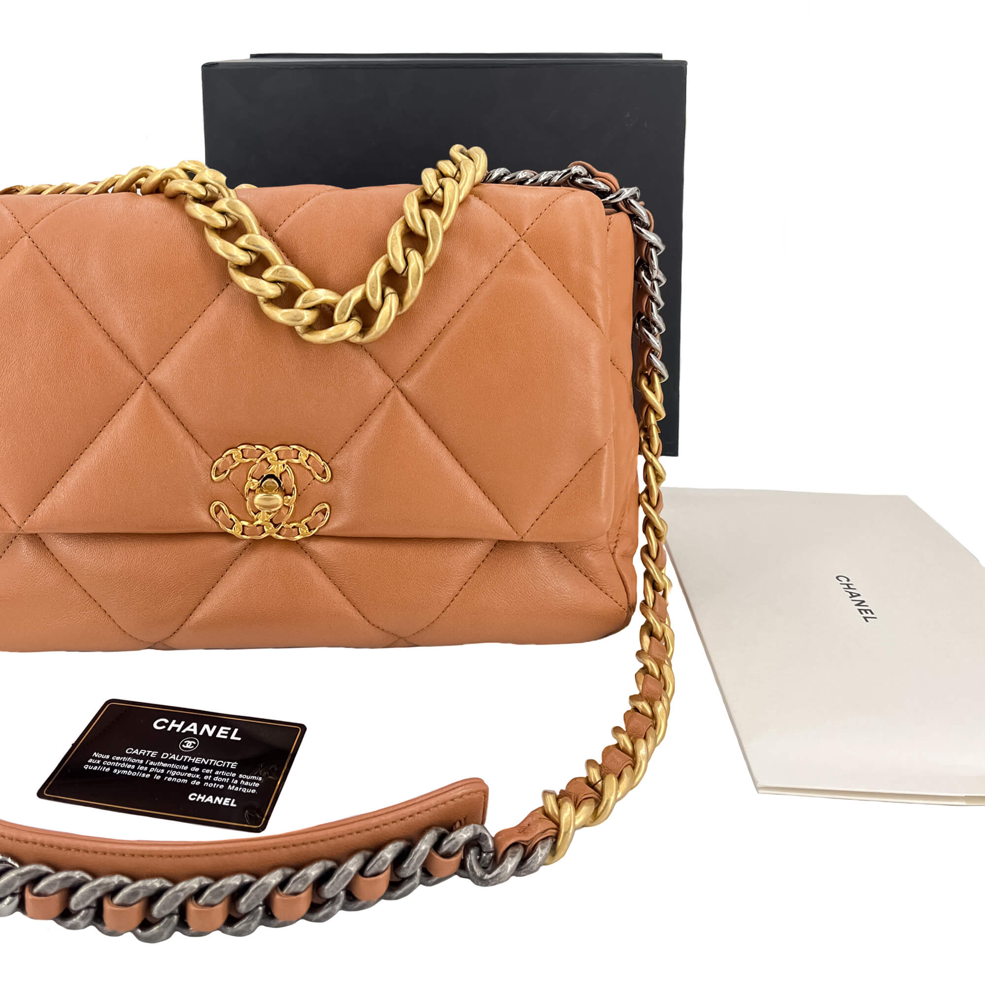 Chanel 19 Large Caramel Leather 2-Way Flap Bag