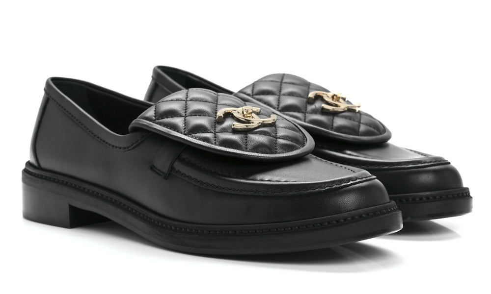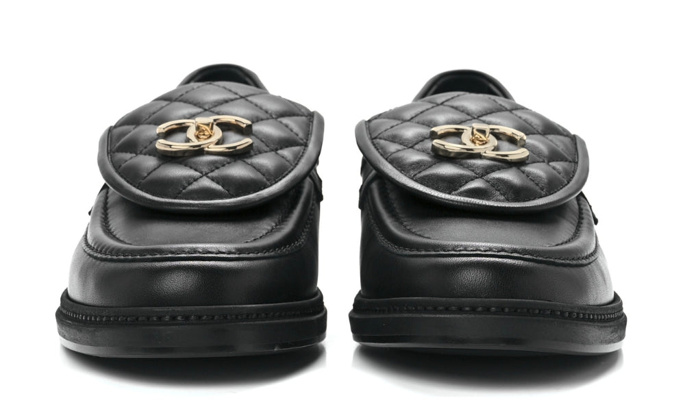 CHANEL Lambskin Quilted CC Turnlock Loafers Black