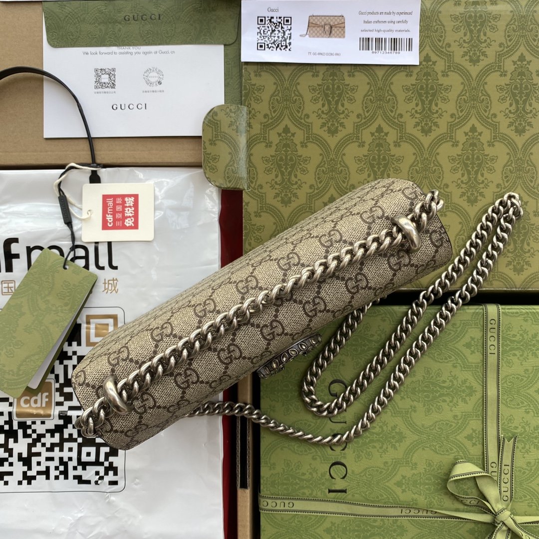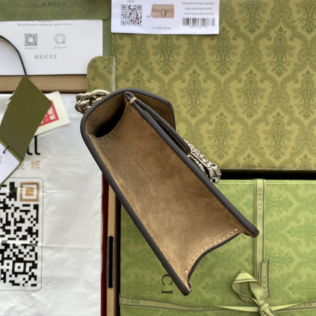 Nella caratteristica combinazione cromatica beige e ebano, questo materiale è riproposto sulla mini borsa Dionysus dalla distintiva fibbia con teste di tigre, ispirata dal dio greco Dionisio, che secondo il mito attraversò il fiume Tigri su una tigre inviatagli da Zeus.