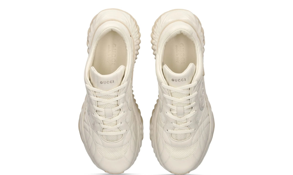 Gucci's Interlocking G logo takes the focus of these white sneakers. This leather iteration of the model boasts a chunky rubber sole for a sporty silhouette.