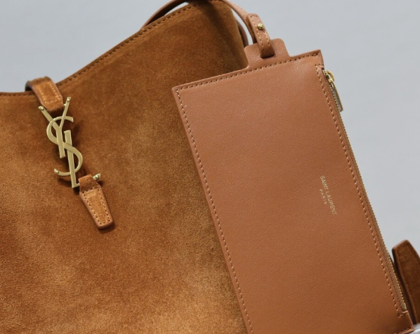 La versione small della LE 5 À 7, con chiusura a linguetta in pelle decorata con la CASSANDRE, foderata in pelle scamosciata tono su tono.