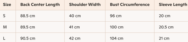 - Size: S, M, L
