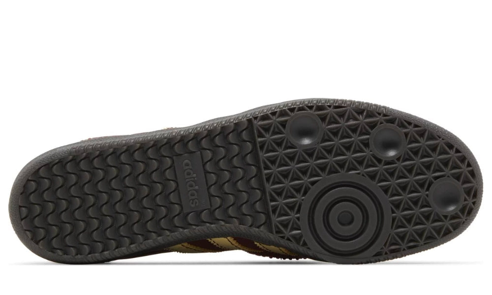 • The Wales Bonner x adidas Samba Nylon ‘Fox Brown’ delivers the British brand’s modern take on a classic. The low-profile silhouette dons a burgundy nylon upper with a tonal forefoot overlay in hairy suede. Tan leather detailing appears on the signature three-stripes and back tab. Blue nylon lines the collar, providing a burst of contrasting color. ‘Wales Bonner’ is imprinted on the lateral heel, while dual branding adorns the sockliner and fold-over tongue. Underpinning the sneaker is a durable gum rubber cupsole.