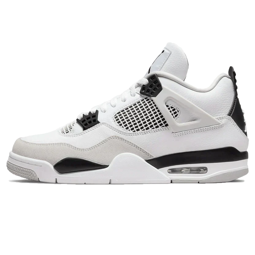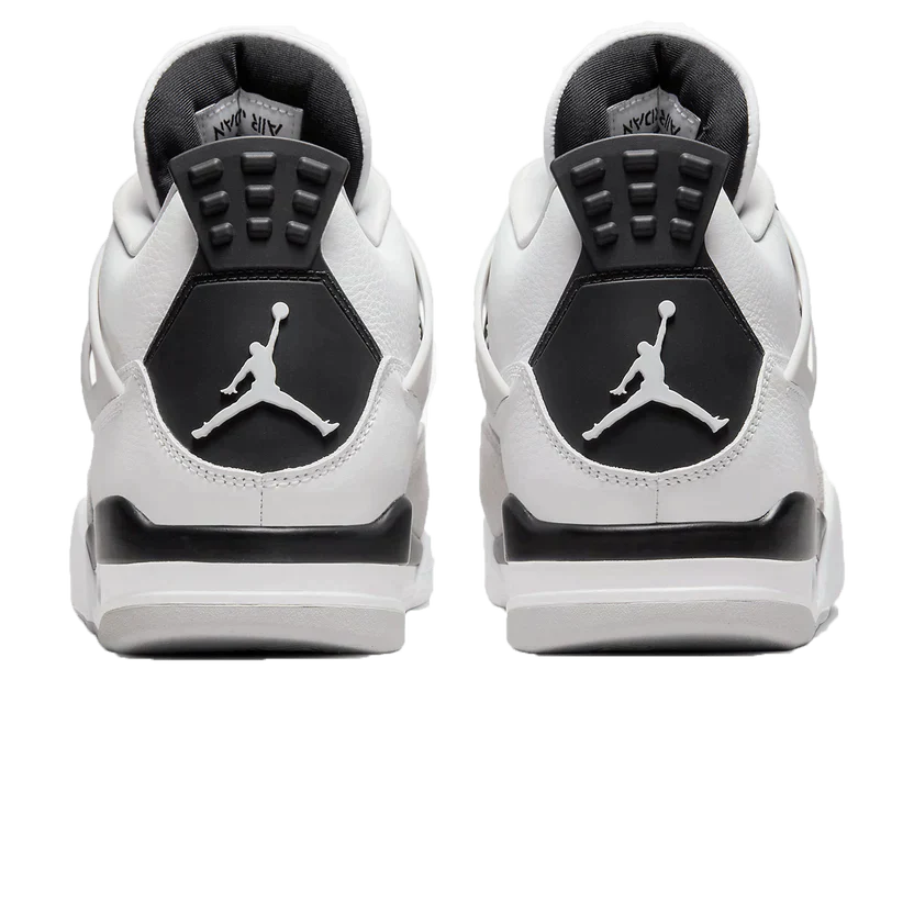'L'Air Jordan 4 Retro ''Military Black'' presenta lo stesso blocco del colore e gli stessi materiali presenti nella colorazione OG ''Military Blue'' del 1989.' La pelle bianca liscia viene utilizzata sulla tomaia, rinforzata con una sovrapposizione dell'avampiede in camoscio grigio. Gli accenti neri contrastanti si fanno strada verso gli occhielli in TPU, la linguetta del tallone modellata e il logo Jumpman visualizzato sull'etichetta della linguetta intrecciata. L'ammortizzazione leggera viene fornita per gentile concessione di un'intersuola in poliuretano bicolore, arricchita da un'unità Air-sole visibile sotto il tallone.