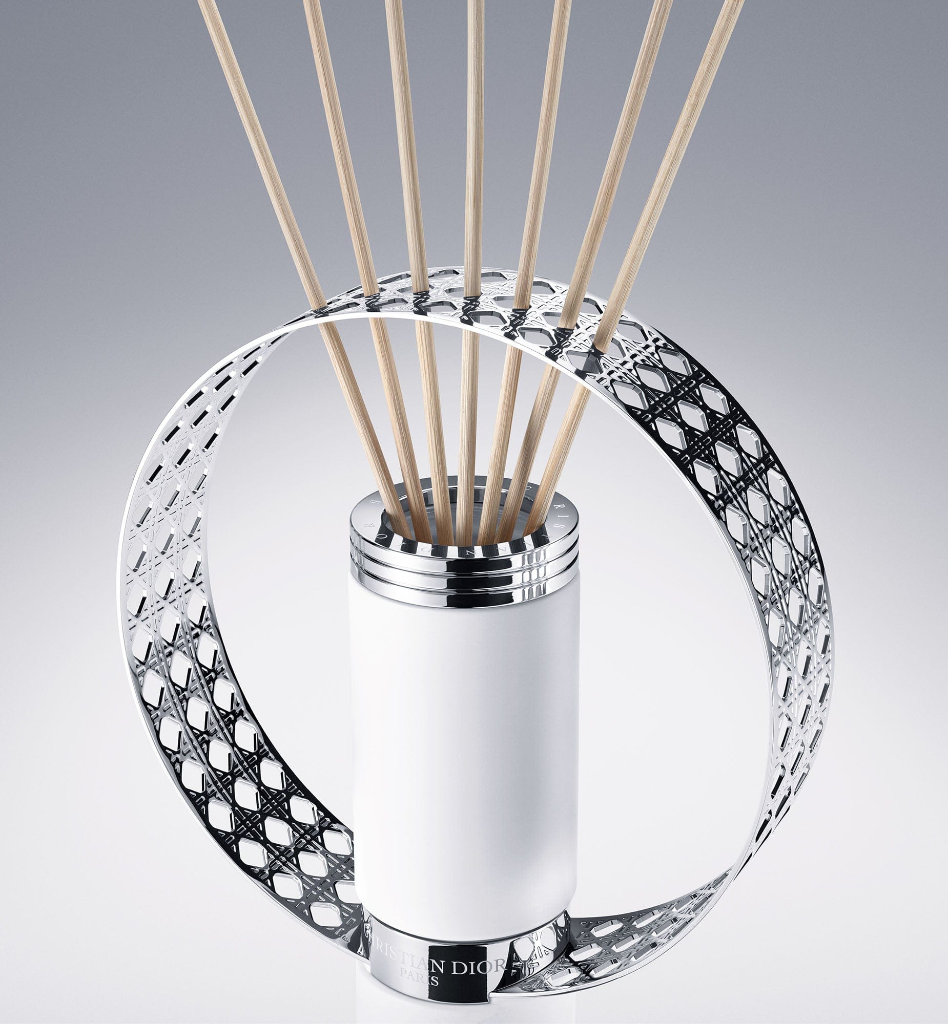 The Bouquet Privé home diffuser is a uniquely elegant designer object. Created by La Collection Privée Christian Dior in partnership with the creative studio Atelier Oï, this beautiful art of living piece diffuses fragrance through an interchangeable refill system, available in several scents.