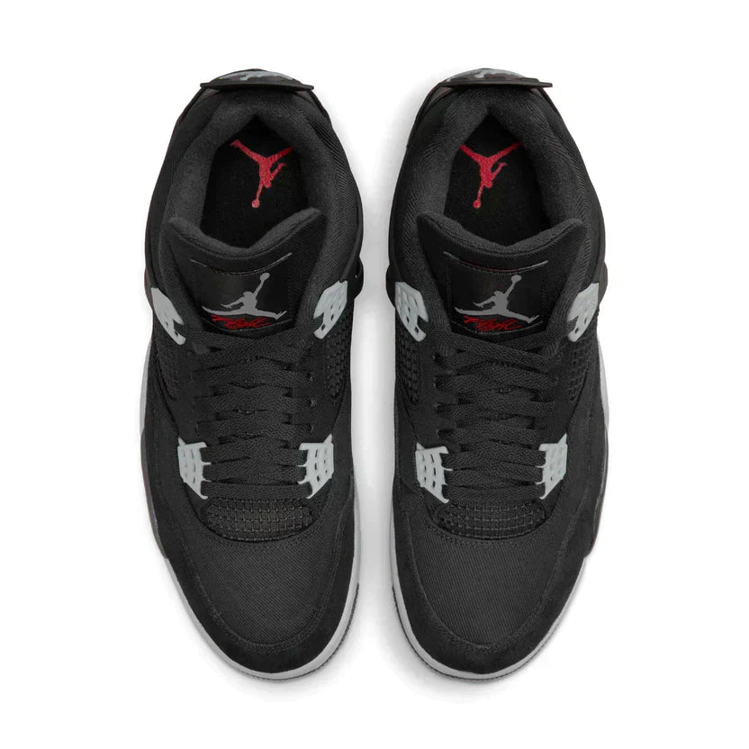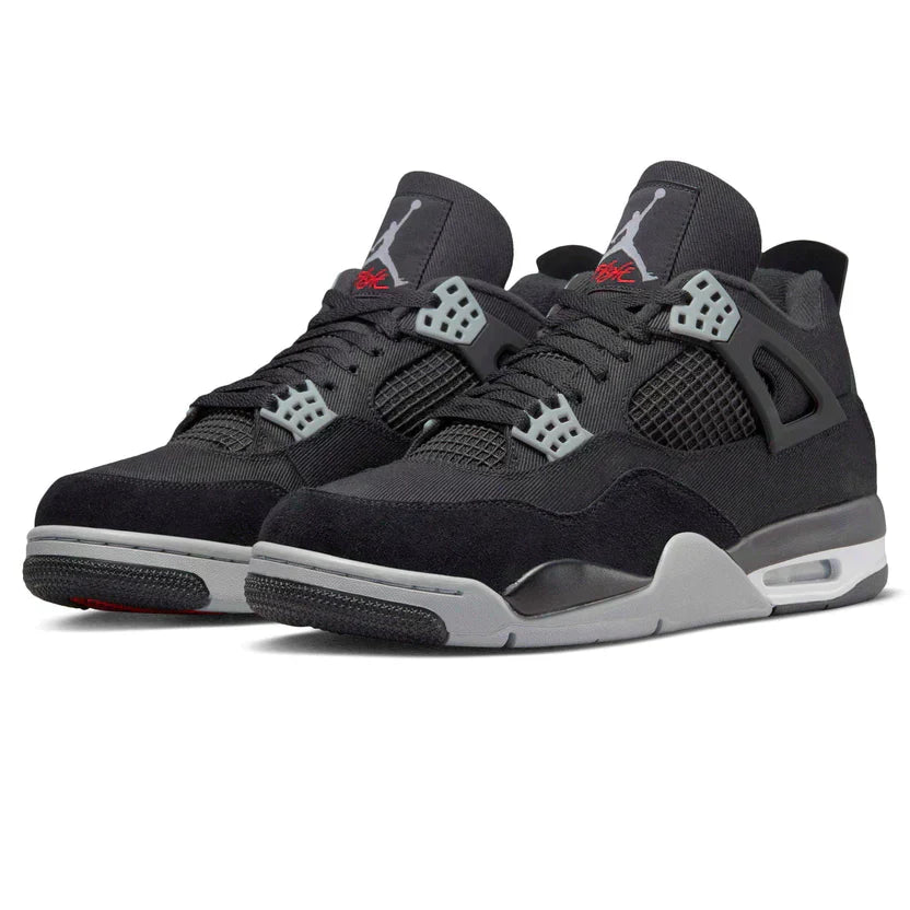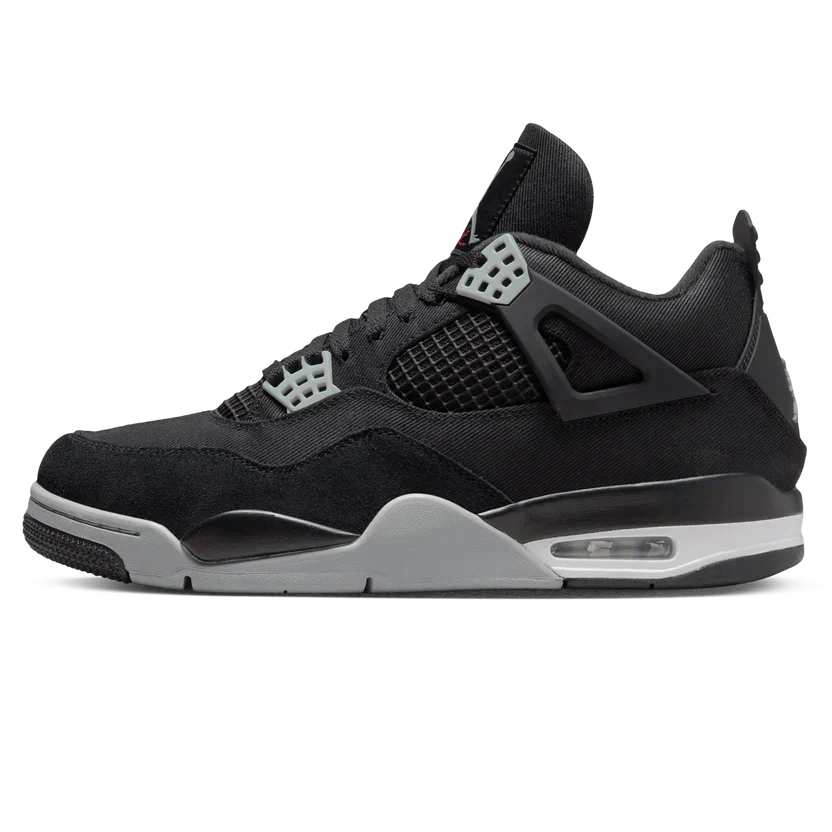L'Air Jordan 4 Retro SE 'Black Canvas' presenta una combinazione di colori neutri che ricorda la rarissima Carhartt x Air Jordan 4 di Eminem. Il mid-top porta una tomaia in tela nera con una sovrapposizione dell'avampiede in camoscio tonale e occhielli stampati grigi. Un Jumpman grigio abbinato decora il tallone posteriore e l'etichetta della linguetta intrecciata, quest'ultima accentata con un logo Flight cremisi per una nitida esplosione di colori contrastanti. La sneaker cavalca un'intersuola in poliuretano bicolore con visibile ammortizzazione Air-sole nel tallone.