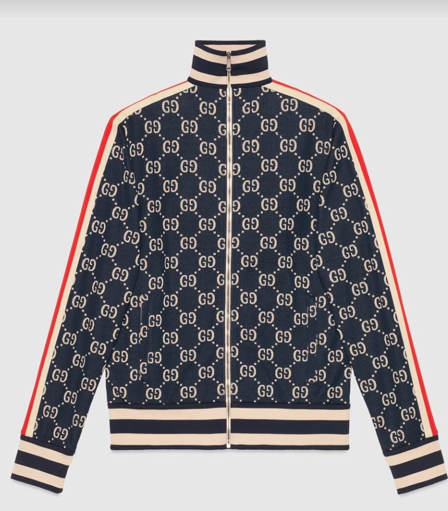 Gucci fabrics, recognizable such as the historic GG fabric, are found in the ready-to-wear selection and characterize contemporary models. As a testament to the brand's continuity between past and present, this zip-up jacket recalls the archive through the GG Intersection patch.