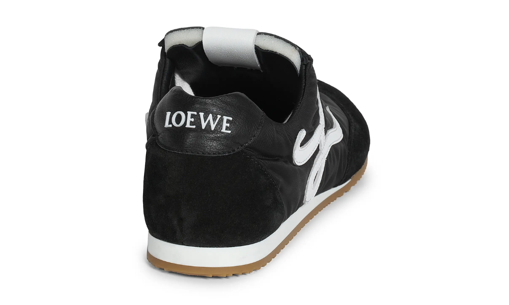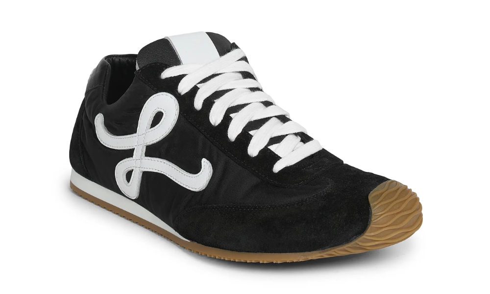 Sneaker in nylon and calfskin featuring an asymmetrical toe shape, a sock-like internal structure and a lightweight rubber outsole that extends to the toecap.