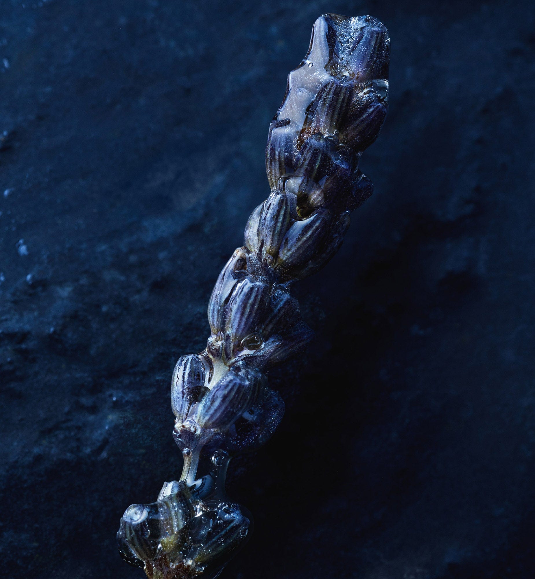 Strengthened by the freshness of water that 'drenches' the ingredients, the scent of the fragrance is composed around notes of cool spices, bleached lavender and musky woods.