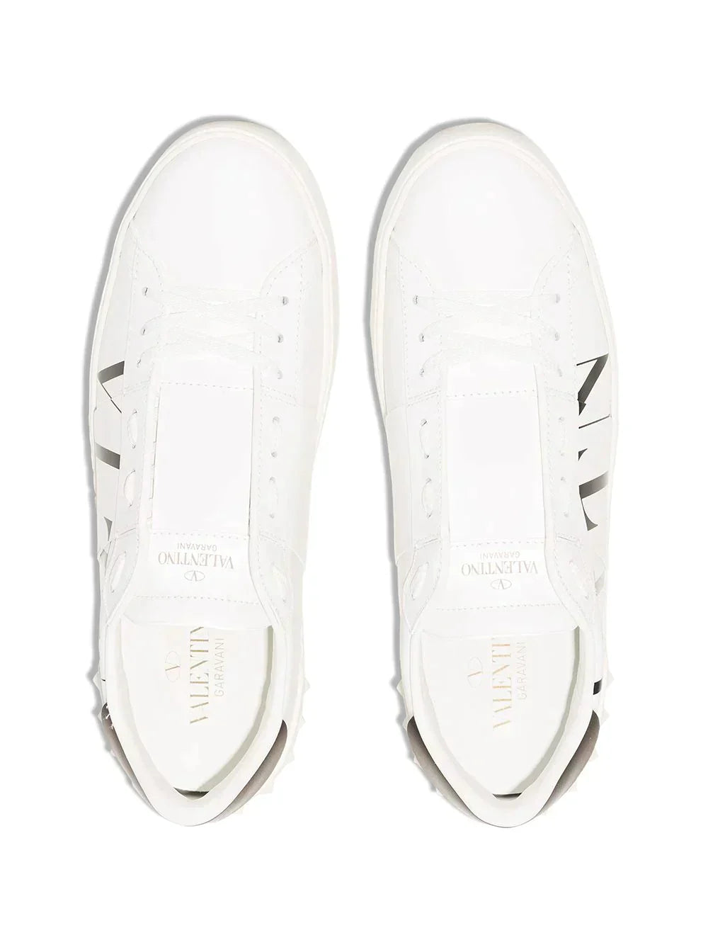 Beige, pelle di vitello, design trasparente, caratteristico dettaglio Rockstud, fascia alla caviglia, chiusura laterale con fibbia, design a punta, soletta in pelle con logo e tacco alto a stiletto.