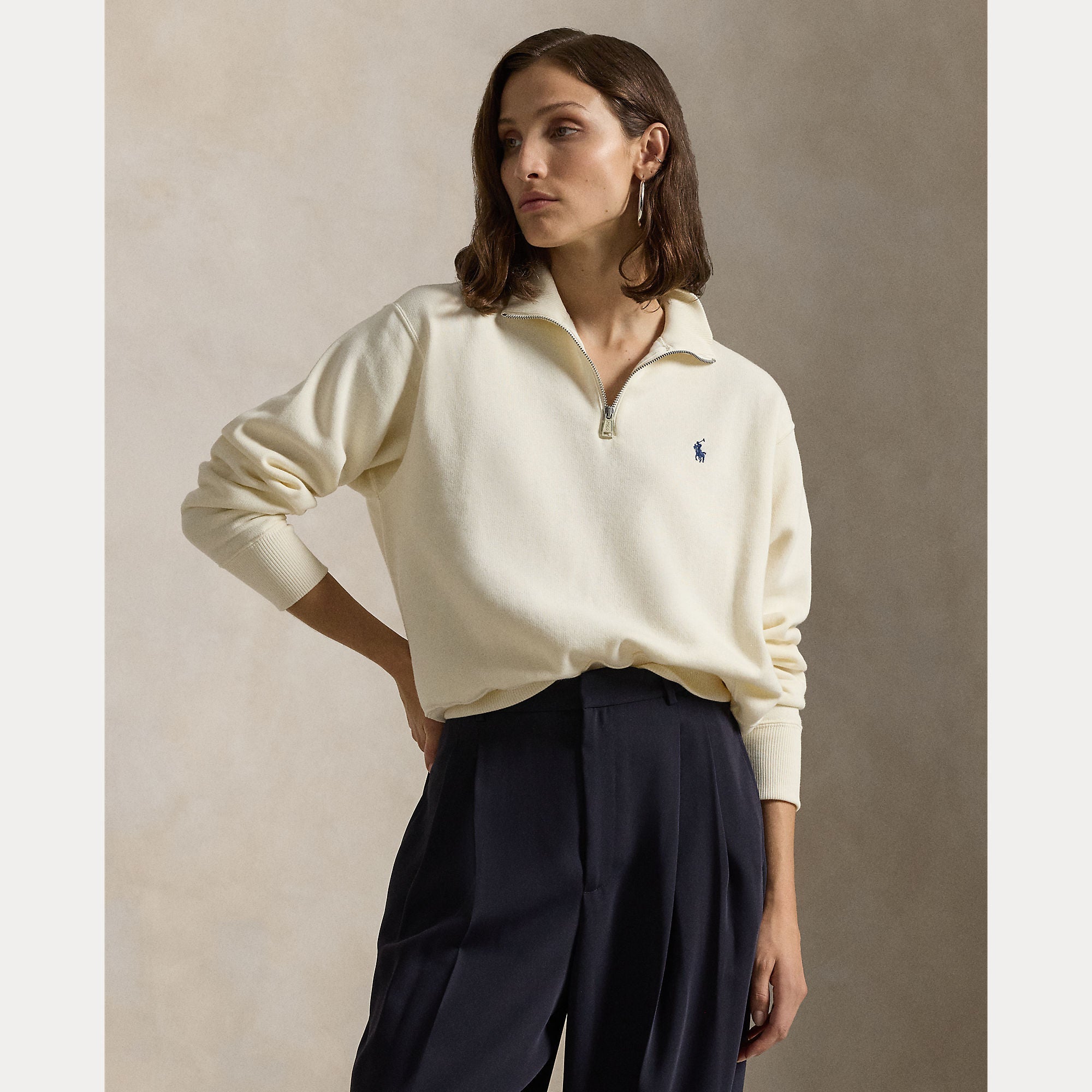 Washed for an even softer feel, this fleece quarter-zip pullover is designed for a relaxed silhouette and enhanced with ribbing at the collar, cuffs, and hem.