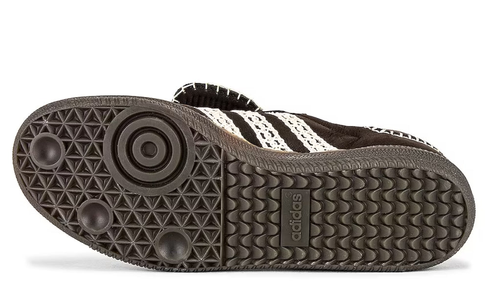 Crafted in partnership with the British fashion designer, the Wales Bonner x adidas Samba ‘Black’ revitalizes the classic silhouette with unique details and a luxurious satin lining. A monochrome finish is executed on the leather upper, reinforced with a tonal suede overlay along the toe. Crocheted three-stripes and hand-stitched detailing give a nod to the designer’s Jamaican heritage, while an extended fold-over tongue displays dual adidas and Wales Bonner branding.